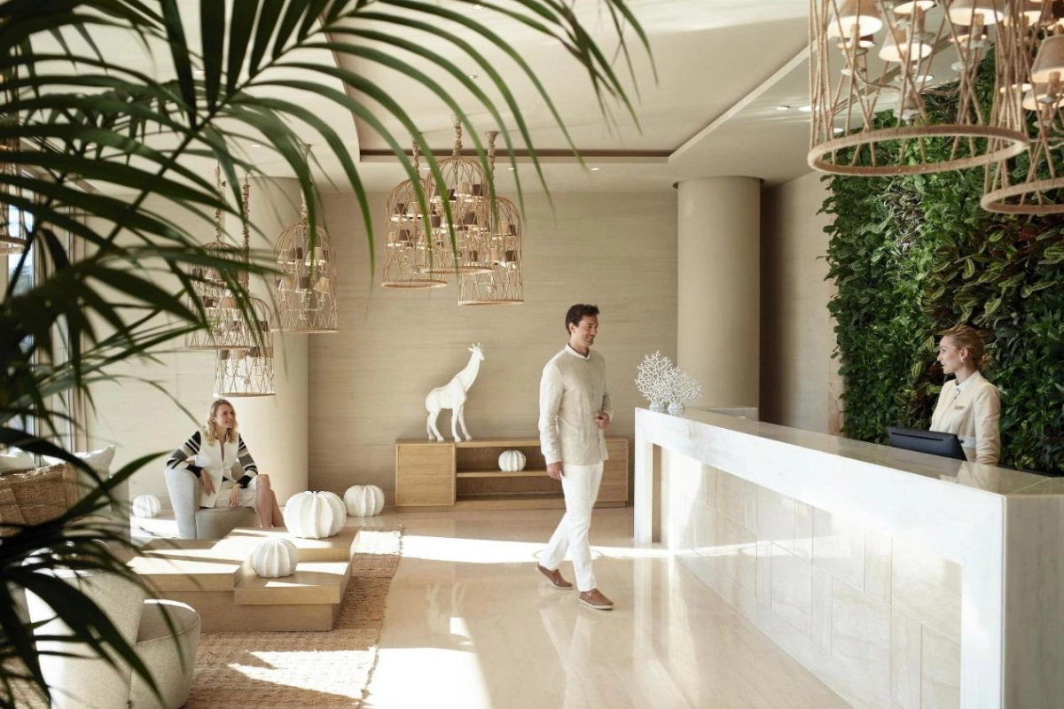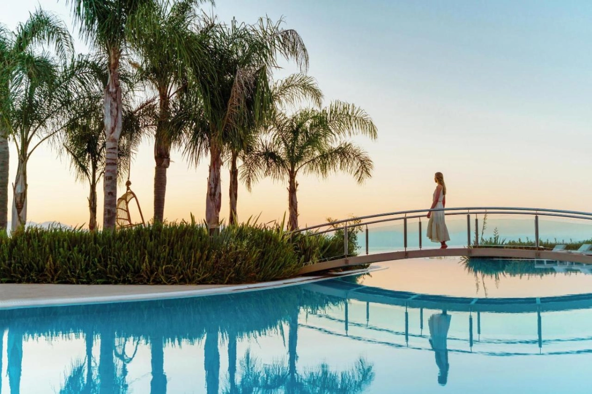 Ikos Dassia, a five-star resort on Corfu's Ionian coast, blends contemporary Mediterranean elegance with authentic Greek hospitality, offering a luxurious escape along a 400-meter private sandy beach in Dassia Bay.