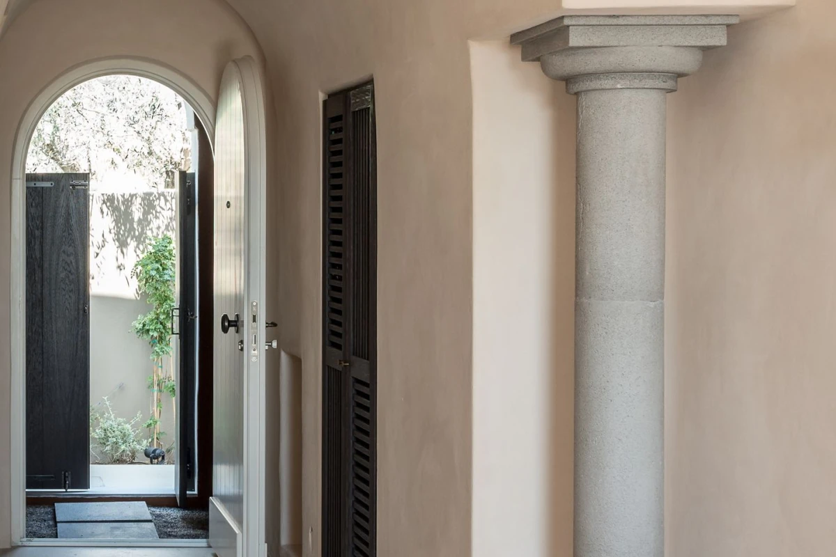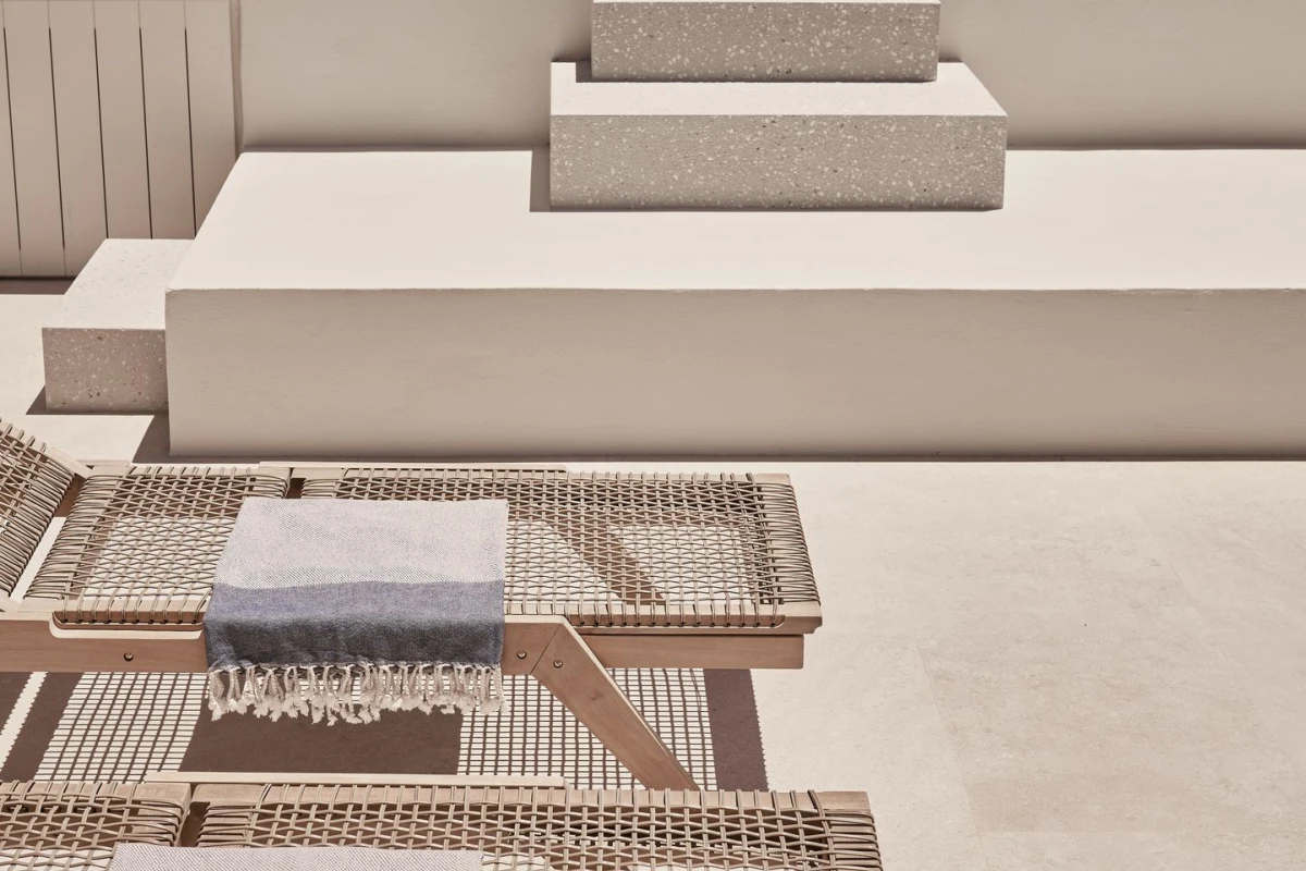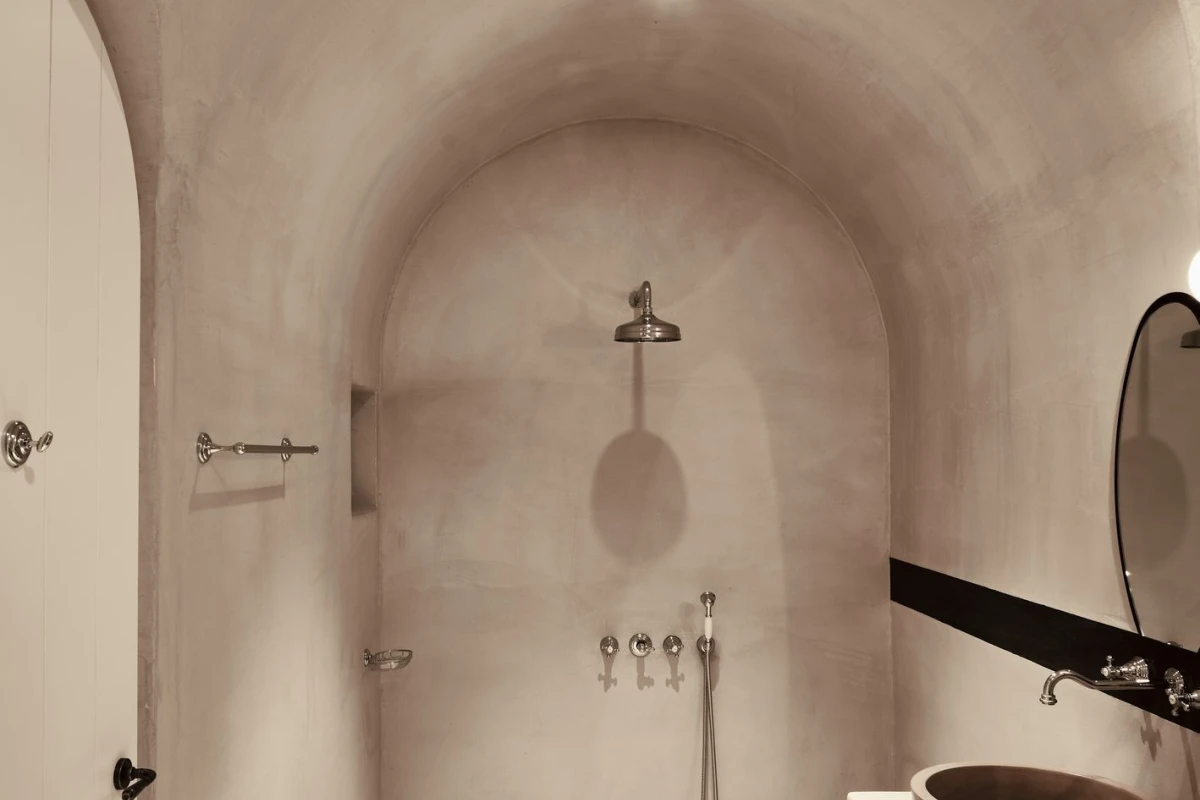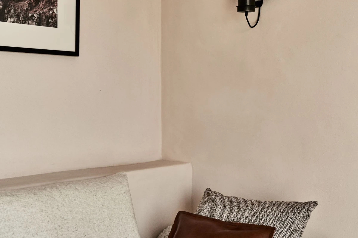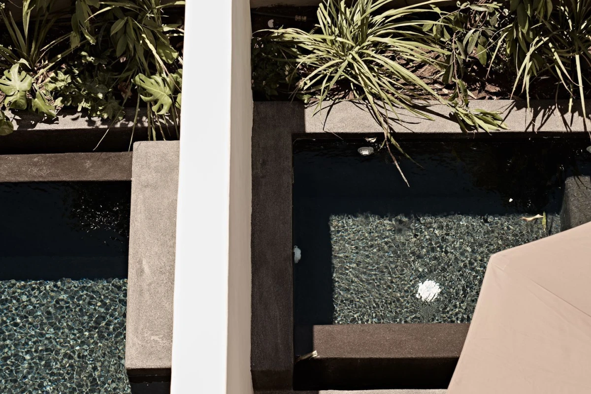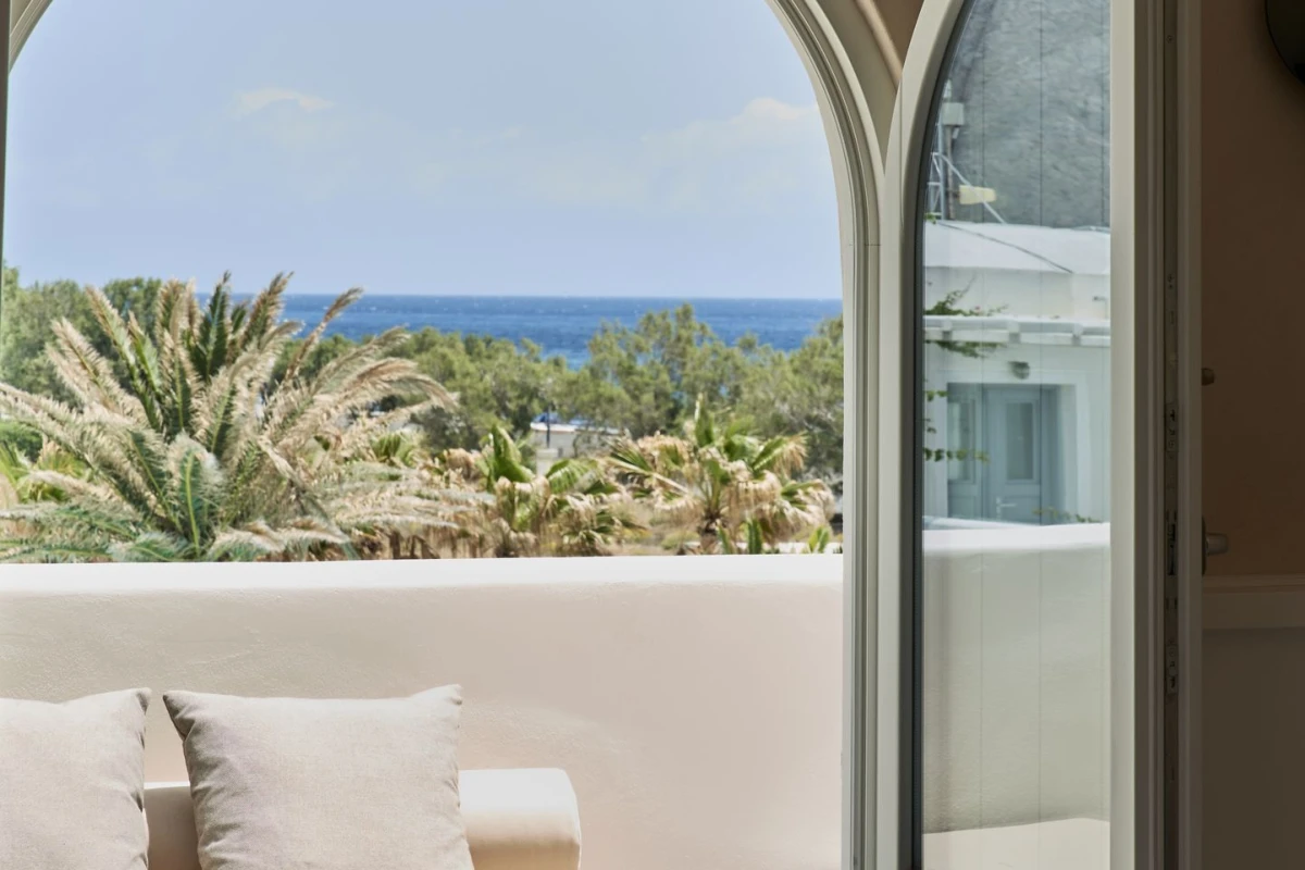 The 12 suites, each named for “story” in various languages, feature king-size or German twin beds, air conditioning, smart TVs, laptop-sized safes, minibars, and coffee/tea facilities. Private terraces, adorned with oversized stone pots and volcanic stone, offer sweeping sea views, with many suites boasting outdoor hot tubs or private pools. The design, accented by ancient olive trees and herbs, creates a serene, sophisticated ambiance.
