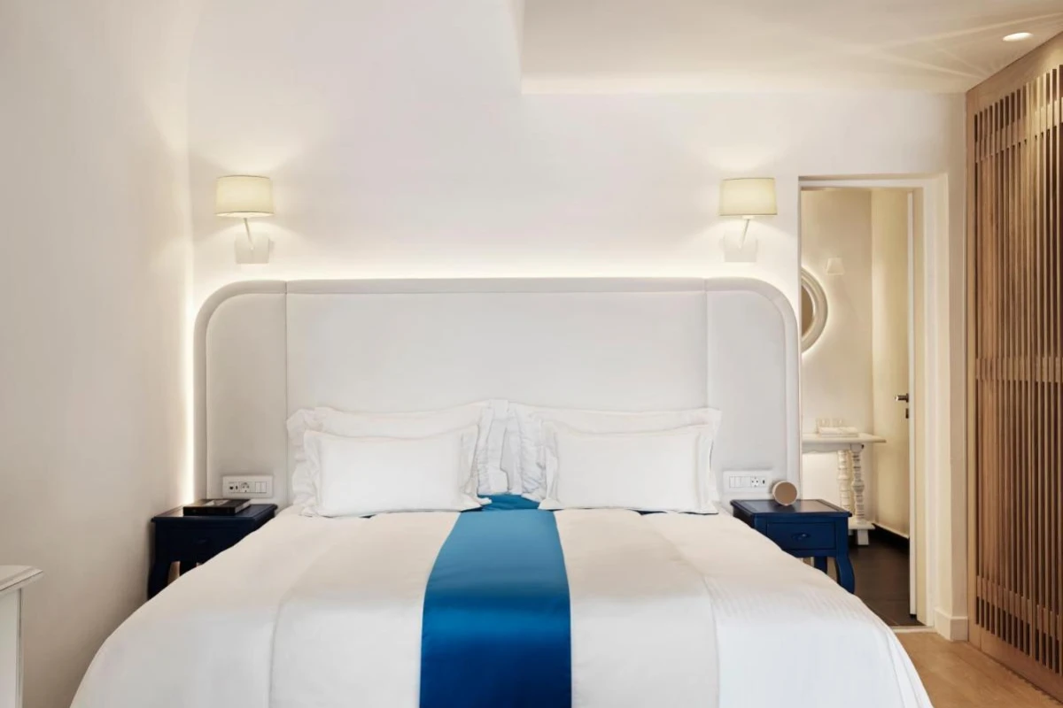 Dining enchants at Botrini's Santorini, led by Michelin-starred chef Ettore Botrini, where exquisite Cycladic cuisine is crafted from the island's freshest ingredients, and at Katikies Lower Deck Lounge, offering refined dishes with sea vistas. A champagne American breakfast is served on private verandas or in-room, complemented by a welcome of wine and fruit. The adjacent bar crafts sophisticated cocktails, perfect for savouring against the volcanic backdrop. Two infinity pools blend seamlessly with the azure horizon, while open-air and indoor hot tubs provide tranquil retreats. The A.SPA offers rejuvenating treatments, and curated island tours, arranged by the attentive staff, invite exploration of Oia's picturesque alleys and beyond.