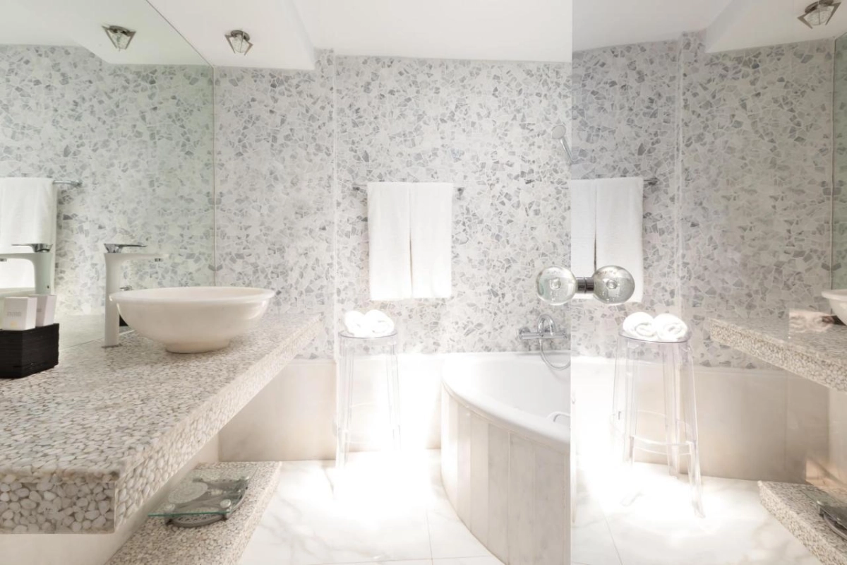Dining at AM du Chef delights with a rich breakfast buffet of international and local delicacies, from fresh fruits and pastries to traditional Greek pies, served daily until 11 am. Namah, nestled by the pool, offers Mediterranean cuisine with fresh salads and local specialties in a shaded patio overlooking Ornos Bay, with a hearty barbecue buffet on Saturdays. La Meduse, a fine-dining gem, serves Greek fusion and fresh seafood amid marbles, candles, and moonlit views. The Del Mar swim-up bar, famed for inventive cocktails and vibrant music, joins two other bars pouring premium beverages and selected wines. Two freshwater pools and a private beach invite relaxation, while the spa offers rejuvenating treatments in a calming setting. A fitness centre and curated island tours, from vibrant nightlife to cultural sites, enhance the experience, with discreet staff ensuring seamless comfort.