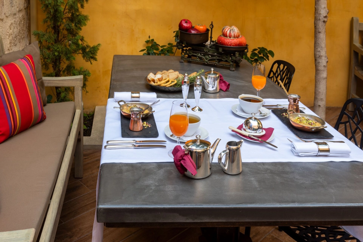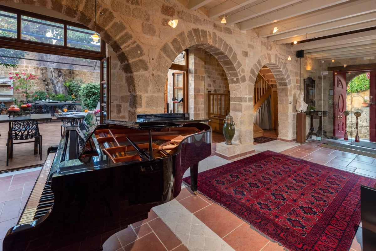 Dining delights with a multi-course breakfast, crafted daily by the chef with fresh local ingredients, weaving flavours from the East Mediterranean and Orient, served in the elegant salon or tranquil garden. Evening tea, coffee, wine, or refreshments are offered gratis, often accompanied by piano melodies from Paris in the garden's serene ambiance. The sophisticated bar serves refined drinks, while a welcome treat greets guests upon arrival, and a farewell gift, along with a complimentary basket of beach mats, towels, and water, enhances the experience. The serene garden and shared lounge invite relaxation, while the tour desk arranges tailored explorations of Rhodes' historic sites. A smoke-free environment ensures pristine tranquility.