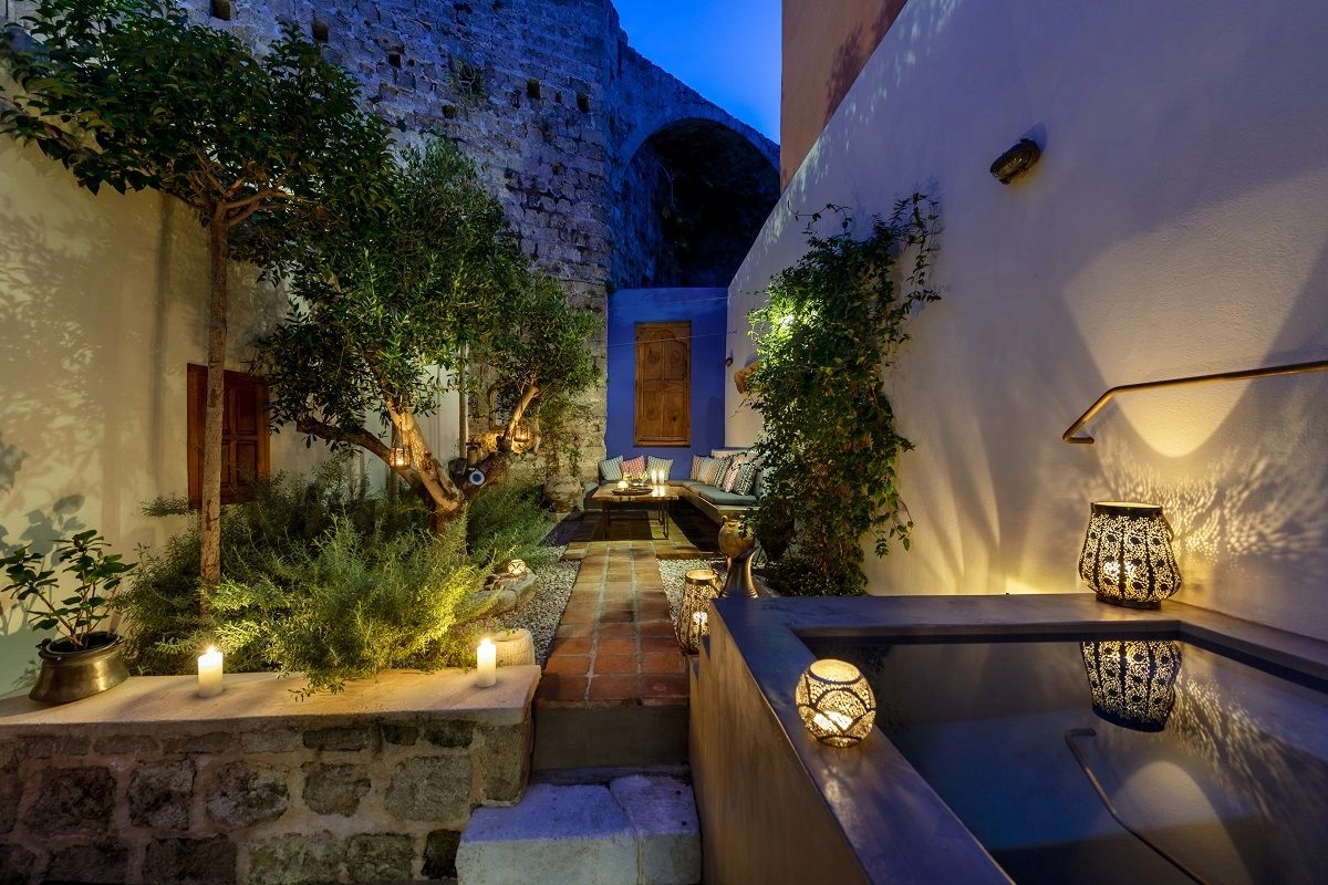 Kokkini Porta Rossa, a Michelin Key-awarded five-star boutique hotel in Rhodes' Medieval Town, exudes historic charm within a 14th-century knight's residence, offering an adults-only, smoke-free sanctuary.