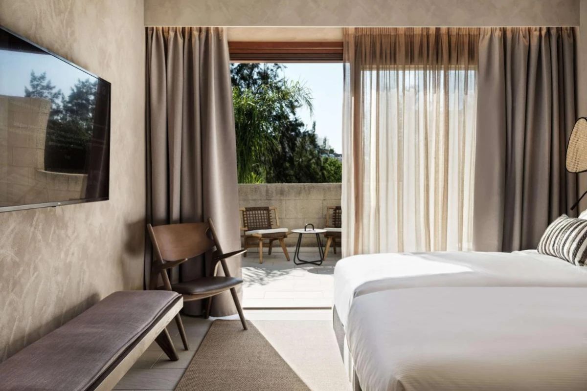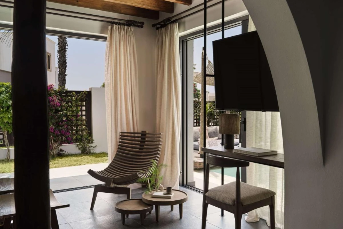 Lindian Village Beach Resort Rhodes, a five-star haven and member of Curio Collection by Hilton, graces the breathtaking Lardos Beach, nestled in lush gardens with tropical flowers and trees near the historic town of Lindos.