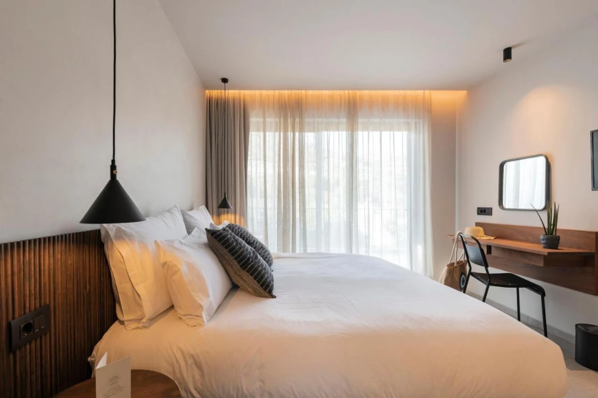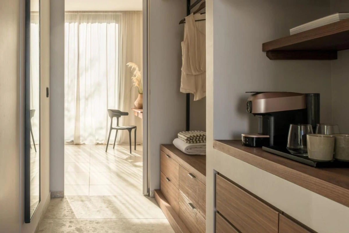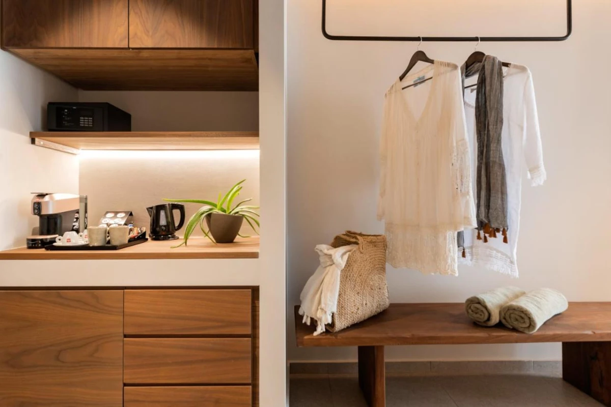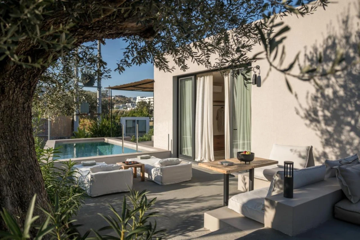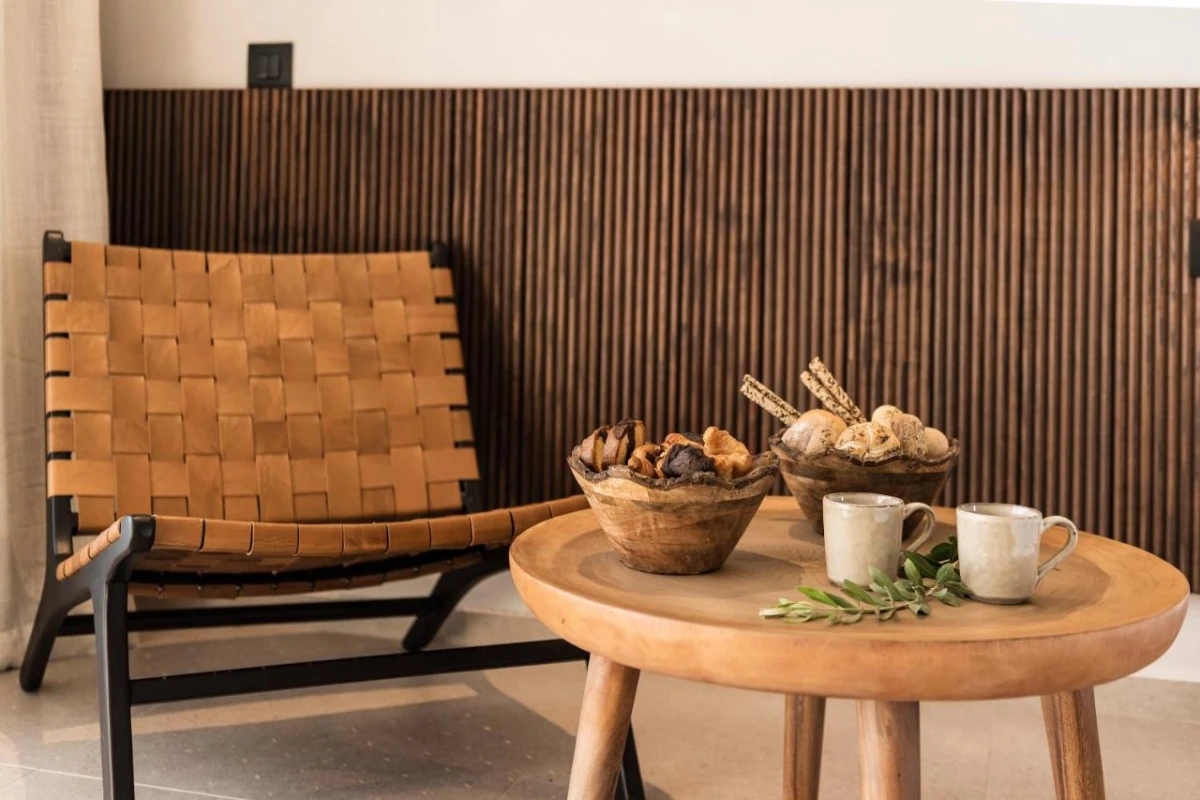 The 37 artfully designed rooms blend eco-chic simplicity with sophistication, featuring air-conditioned comfort, satellite TVs, coffee and tea facilities, bathrobes, slippers, and private bathrooms with premium toiletries. Each opens to a private balcony or veranda, offering spellbinding views of the Aegean Sea or majestic mountains, ensuring a tranquil retreat.