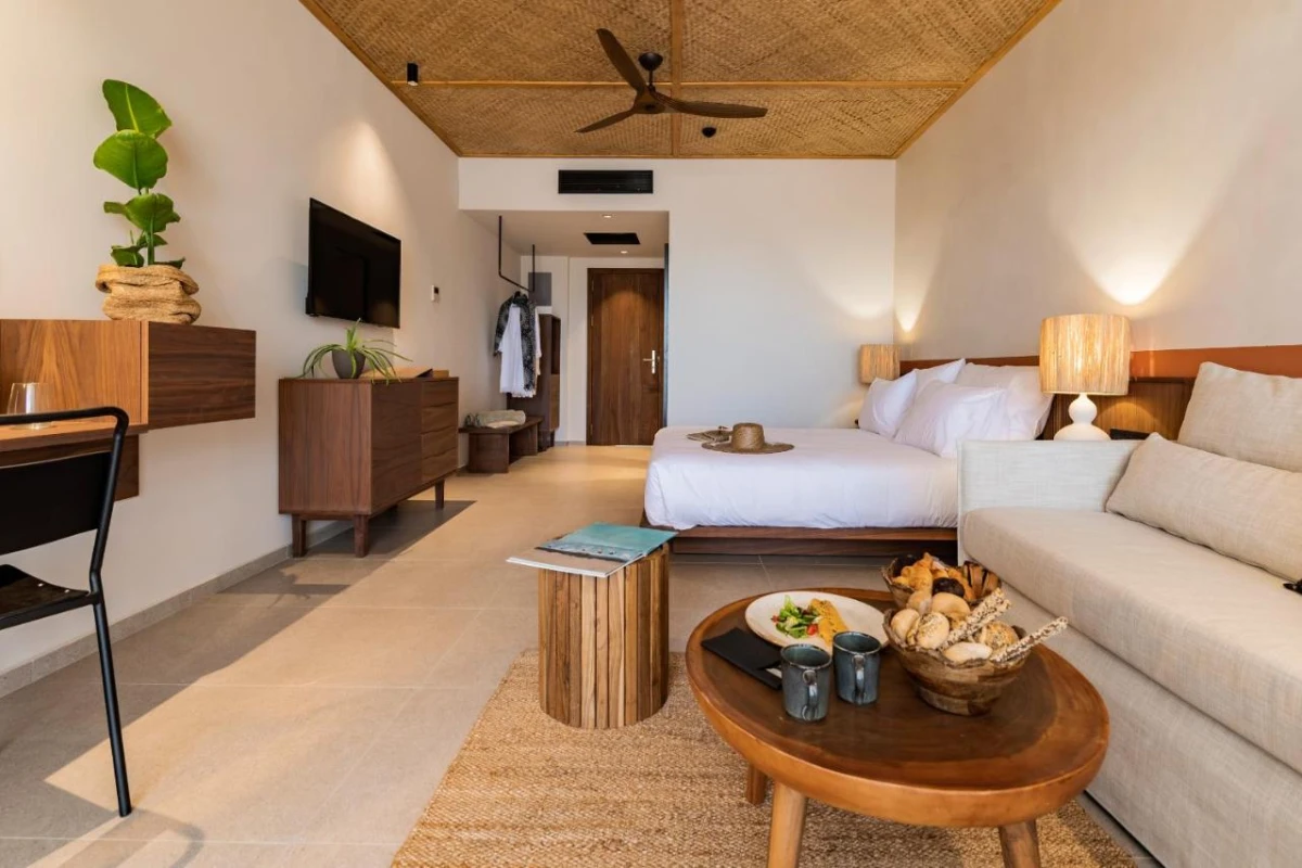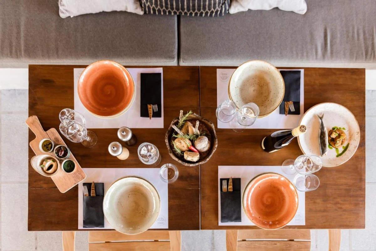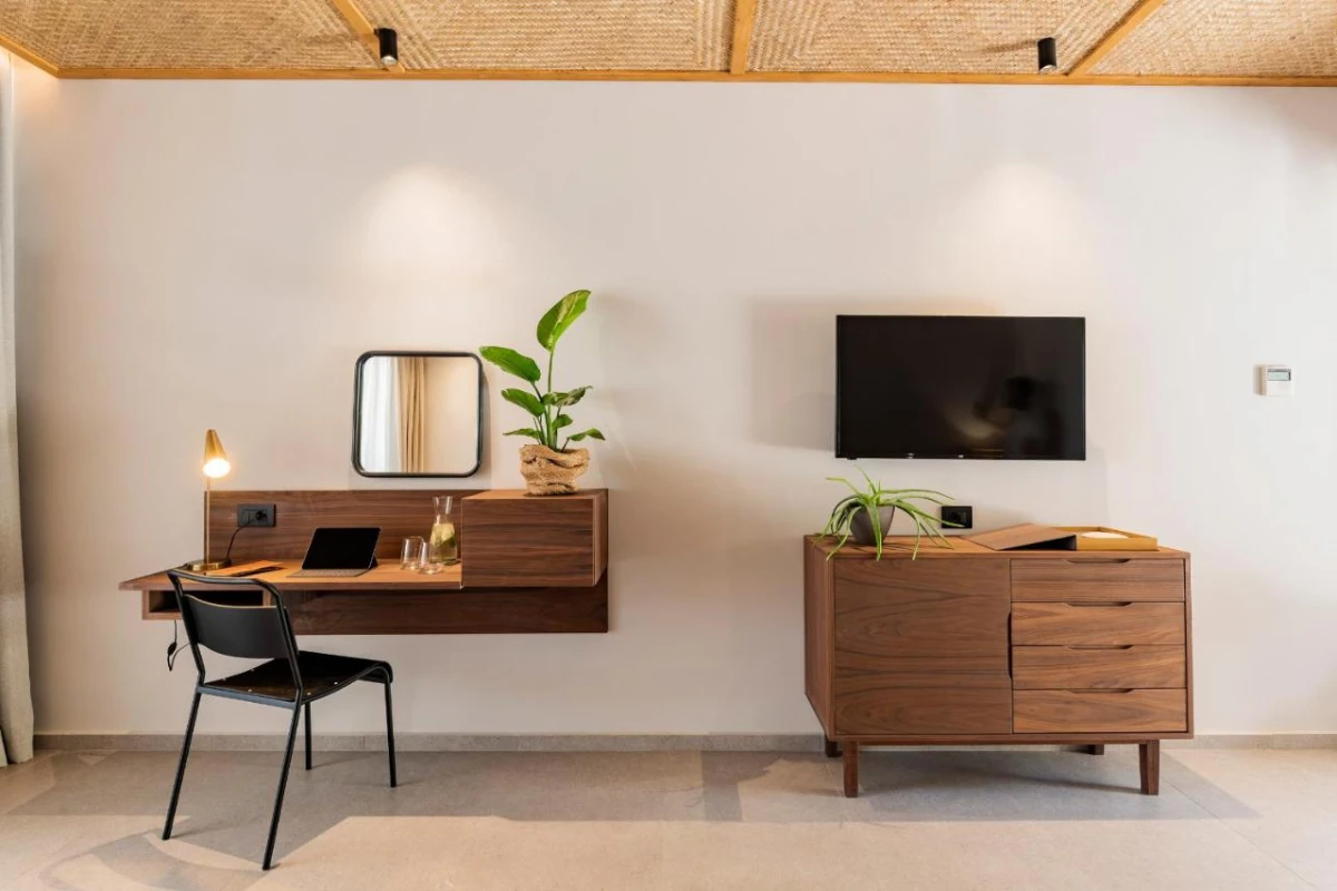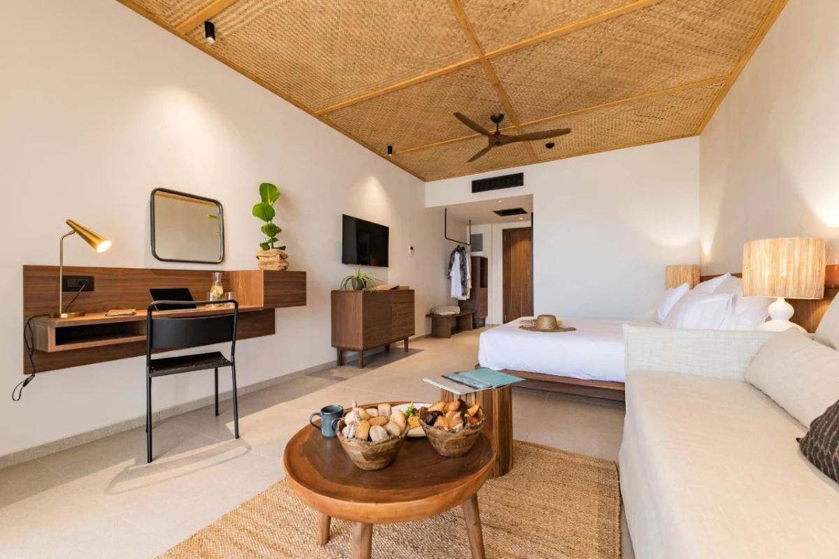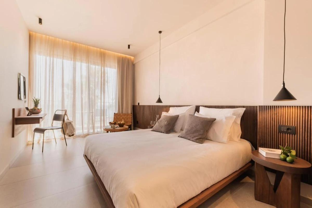 The 37 artfully designed rooms blend eco-chic simplicity with sophistication, featuring air-conditioned comfort, satellite TVs, coffee and tea facilities, bathrobes, slippers, and private bathrooms with premium toiletries. Each opens to a private balcony or veranda, offering spellbinding views of the Aegean Sea or majestic mountains, ensuring a tranquil retreat.