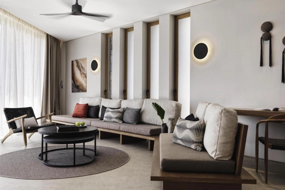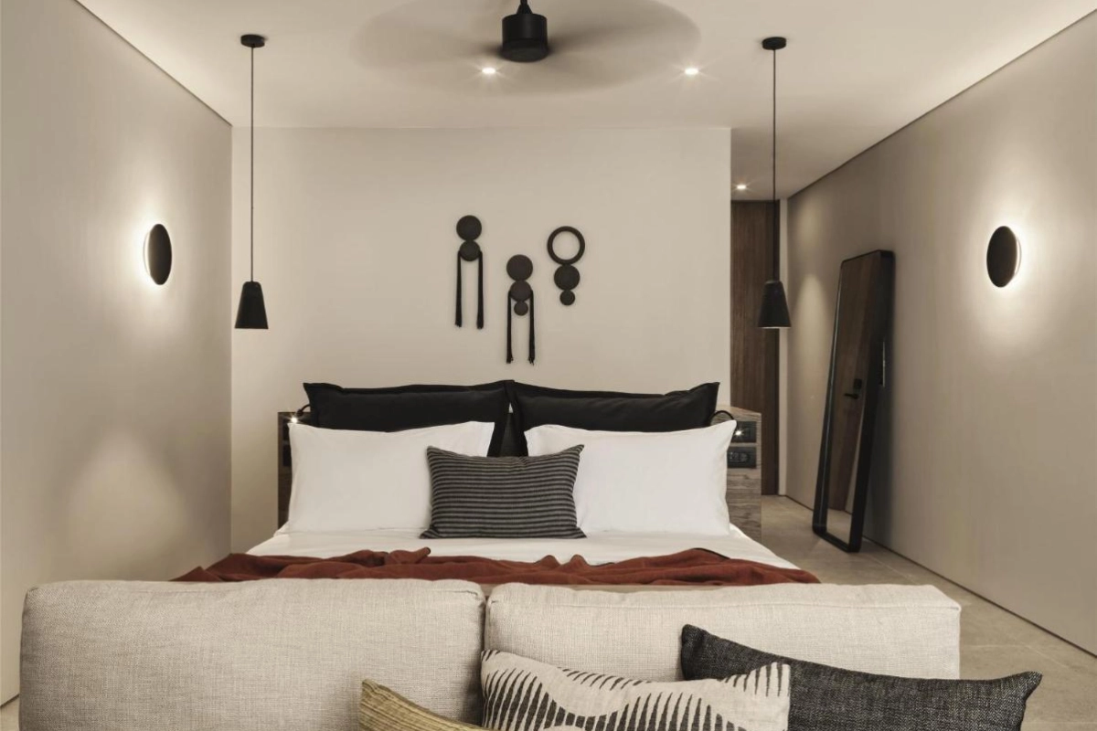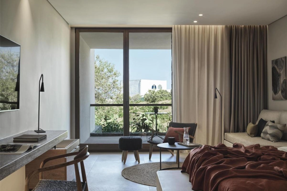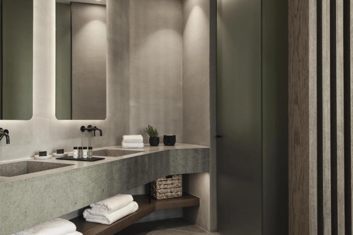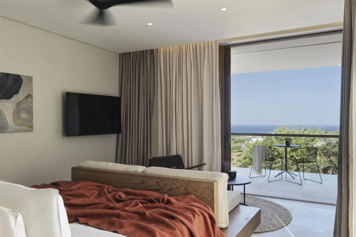 The 59 rooms and suites, many with private pools or hot tubs, feature air-conditioned comfort, flat-screen TVs, minibars, and luxurious bathrooms with premium toiletries. Private terraces unveil unobstructed Aegean vistas, harmonizing with the island's volcanic beauty through designs inspired by water, light, and air.