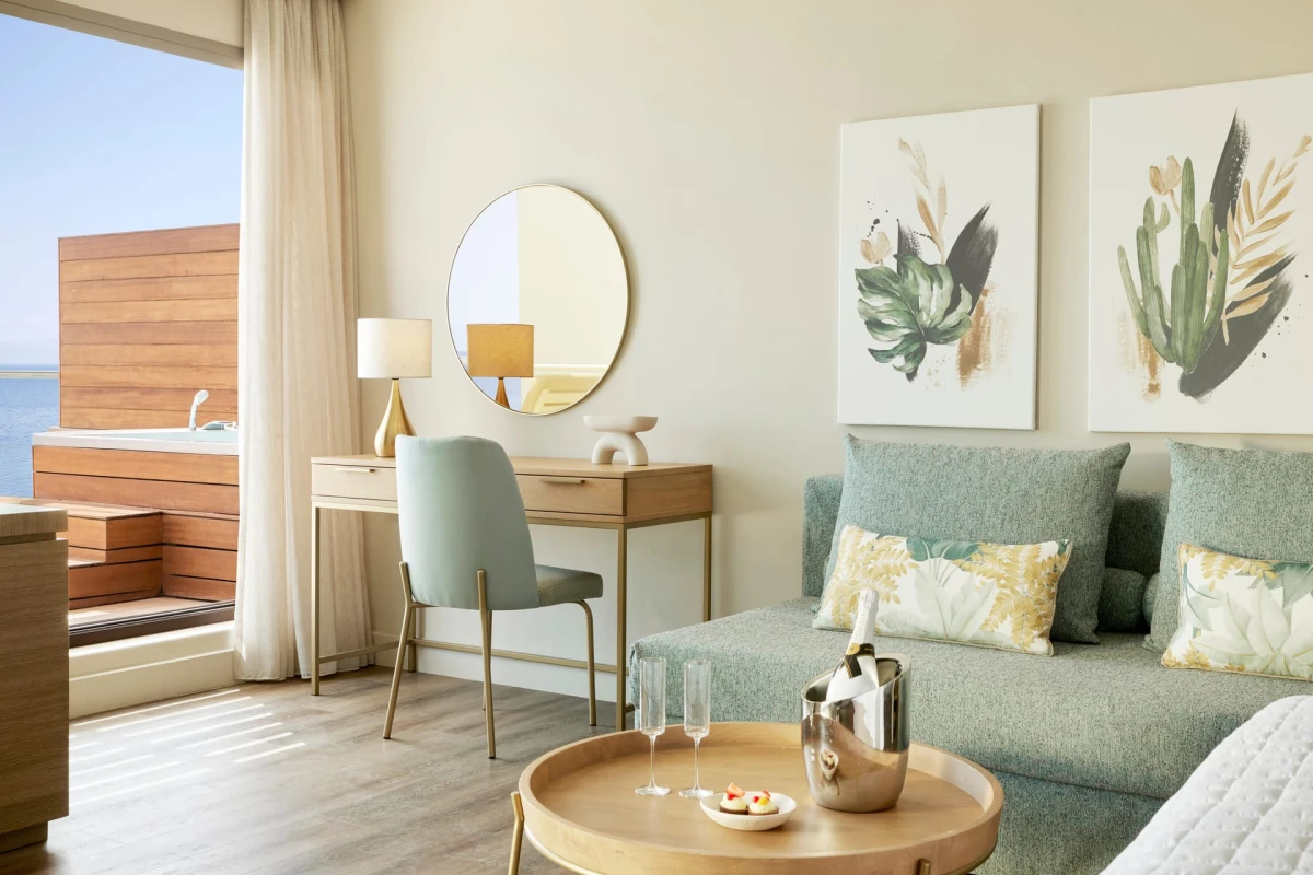 The 362 spacious rooms and suites feature air-conditioned comfort, satellite flat-screen TVs, minibars or fridges, and private bathrooms with hairdryers and premium toiletries. Each opens to furnished balconies or terraces with captivating sea or garden views, with the Ultra All Inclusive option enhancing the refined experience.