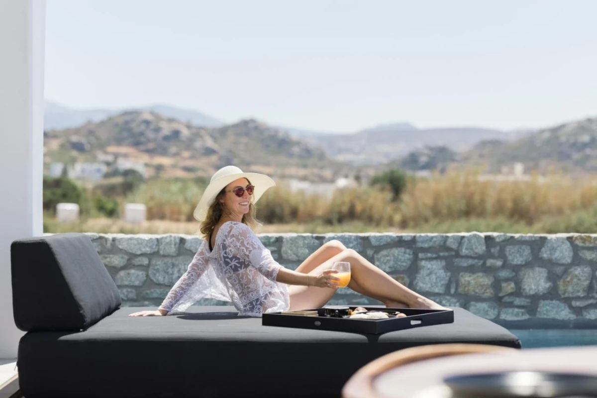 Milestones Naxos, a five-star hotel situated in Naxos Chora on the enchanting island of Naxos, Greece, offers refined accommodations amid the Cycladic charm, complete with a terrace and a hot tub.