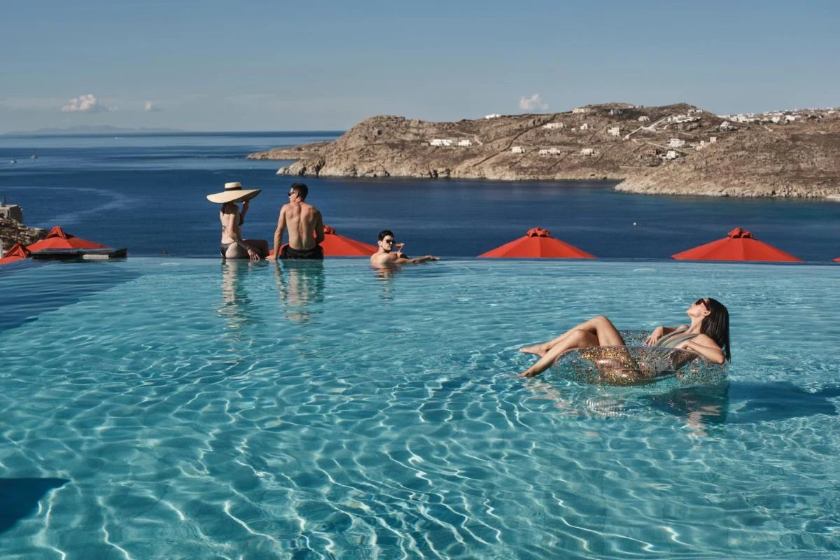 Two shimmering outdoor pools invite leisurely relaxation, while the thalassotherapy wellness centre offers rejuvenating treatments for ultimate tranquility. The sea-view terrace restaurant serves a lavish breakfast of Greek yogurt, organic honey, and Mykonian delicacies, with gourmet lunch and dinner menus showcasing traditional recipes elevated by the chef's artistry. A stylish bar crafts inventive cocktails, perfect for savouring against the backdrop of Elia's sunlit shores. The 24-hour front desk curates bespoke experiences, from private yacht charters to exploring Mykonos' vibrant nightlife, ensuring every moment feels effortless and inspired.
