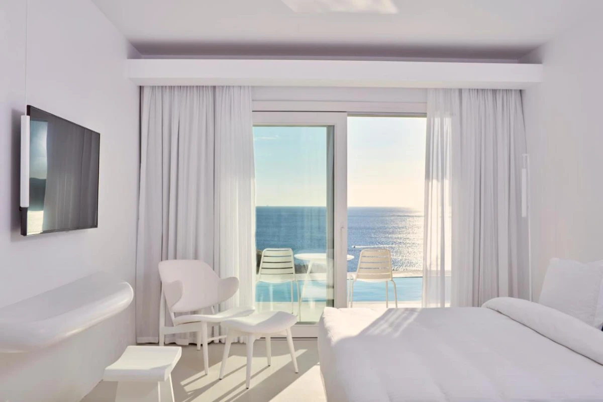 Myconian Imperial, a distinguished five-star resort and member of The Leading Hotels of the World, sits majestically above Elia Bay in Mykonos, offering captivating views of the Aegean Sea.