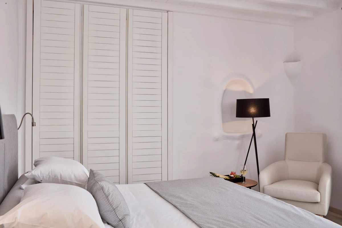 Mykonos Princess Hotel, a refined five-star retreat near Agios Stefanos Beach, Mykonos, blends Cycladic architecture with modern elegance, offering stunning views of the Aegean Sea and Delos Island.