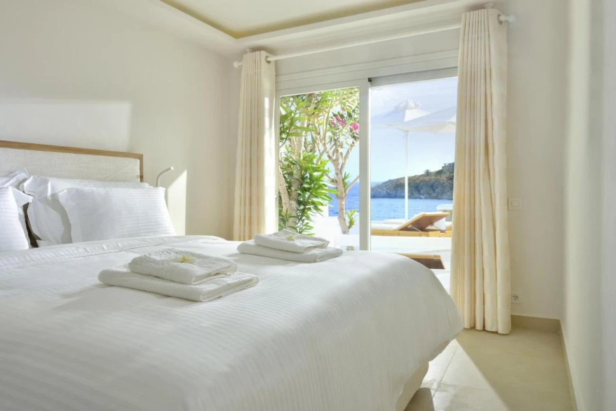 Nissaki Boutique Hotel, a refined five-star retreat above Psarou Beach, Mykonos, blends Cycladic charm with sophisticated elegance, offering breathtaking views of the Aegean Sea.