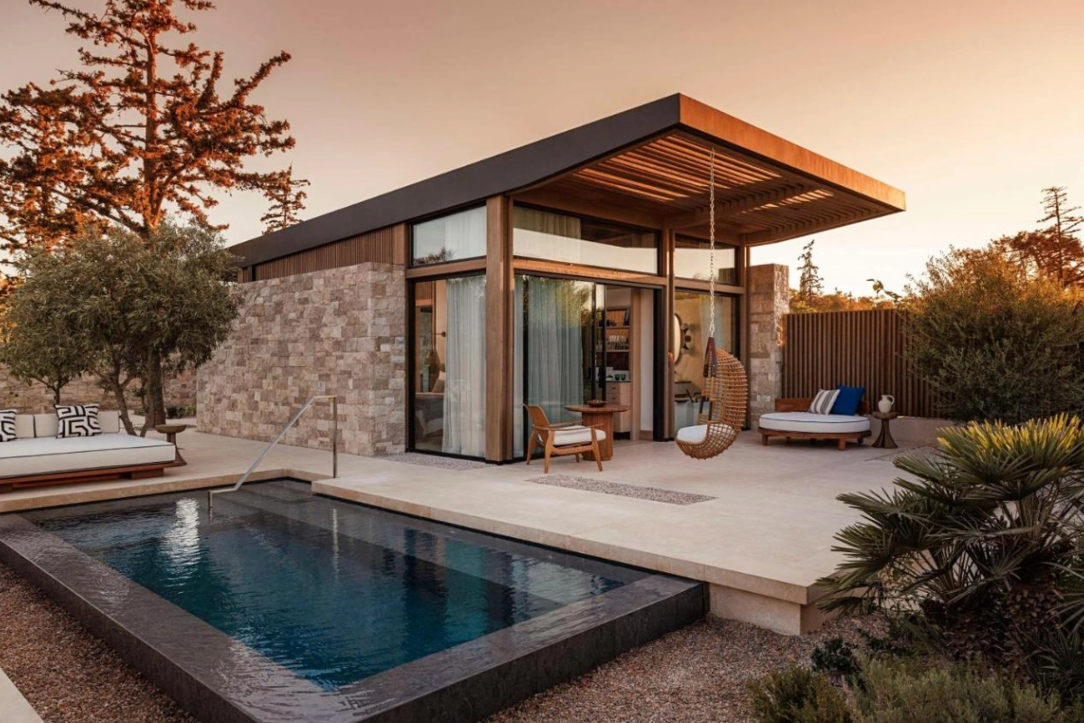 One&Only Aesthesis, a captivating five-star enclave in Glyfada's protected forest reserve, beguiles with its mid-century glamour, evoking the Athenian Riviera's golden era, where timeless antiquities and modern indulgence intertwine steps from Asteras Beach's shimmering shores.