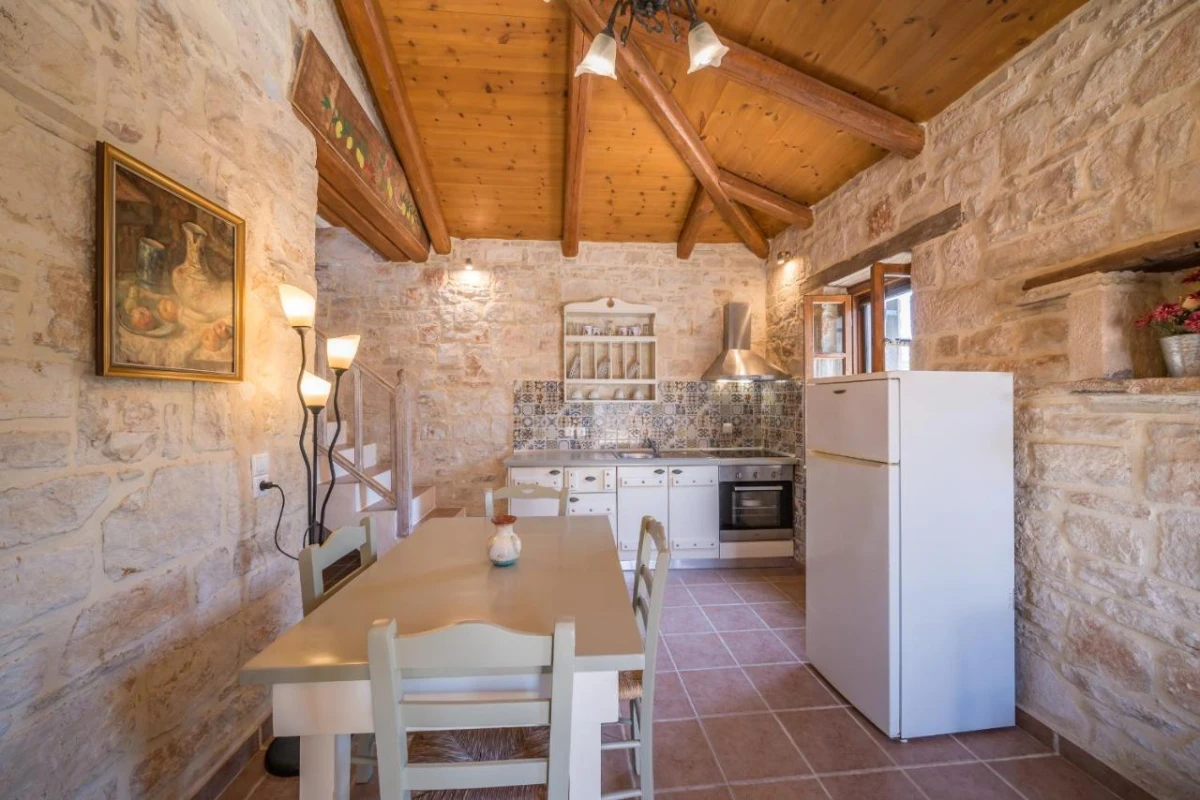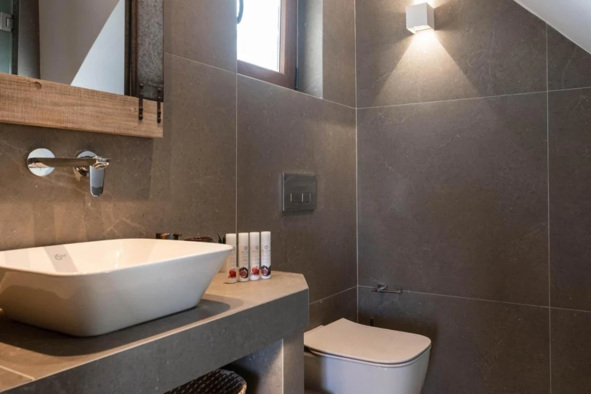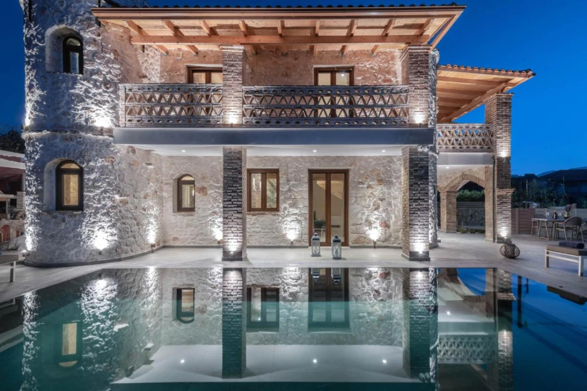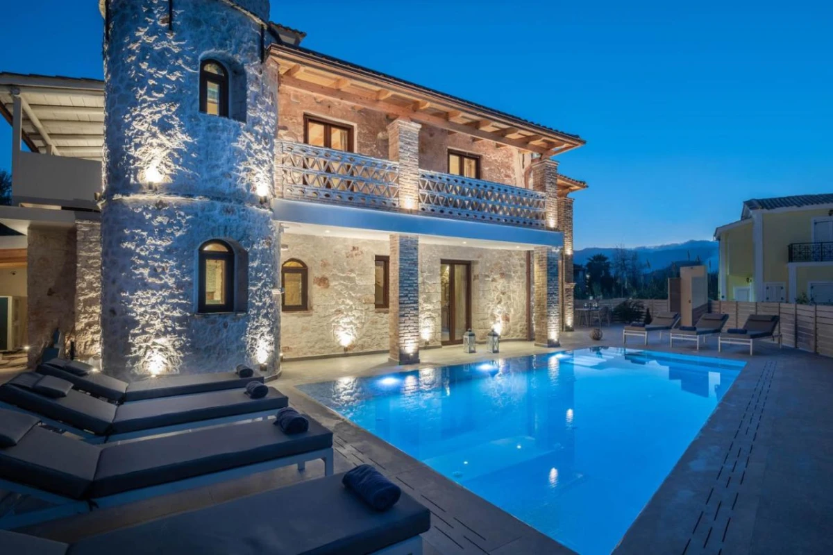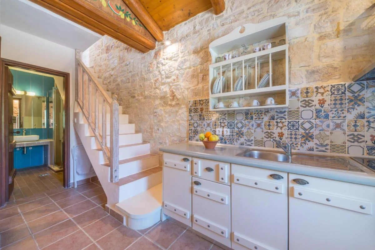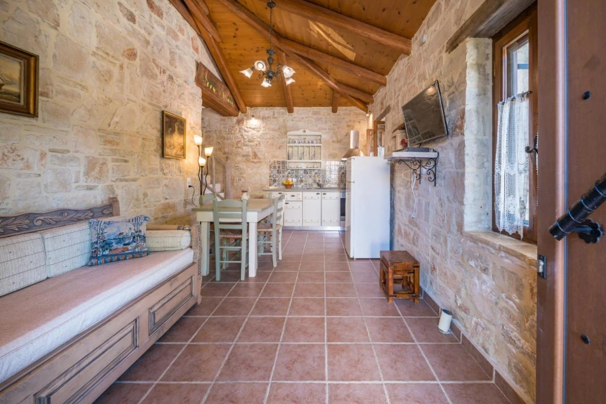 The 15 uniquely designed suites and stone villas blend rustic Greek charm with modern luxury, featuring earthy tones, solid wooden ceilings, and handcrafted furnishings. Each air-conditioned unit includes spacious living areas, king-size or twin beds, and private bathrooms with walk-in showers, bathrobes, slippers, and premium toiletries. Private balconies or terraces offer breathtaking Ionian Sea views, while select villas provide fully equipped kitchens with ovens and dishwashers. Large flat-screen TVs, coffee machines, and safes enhance the tranquil, tailored ambiance, perfect for a restful retreat.
