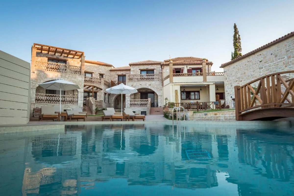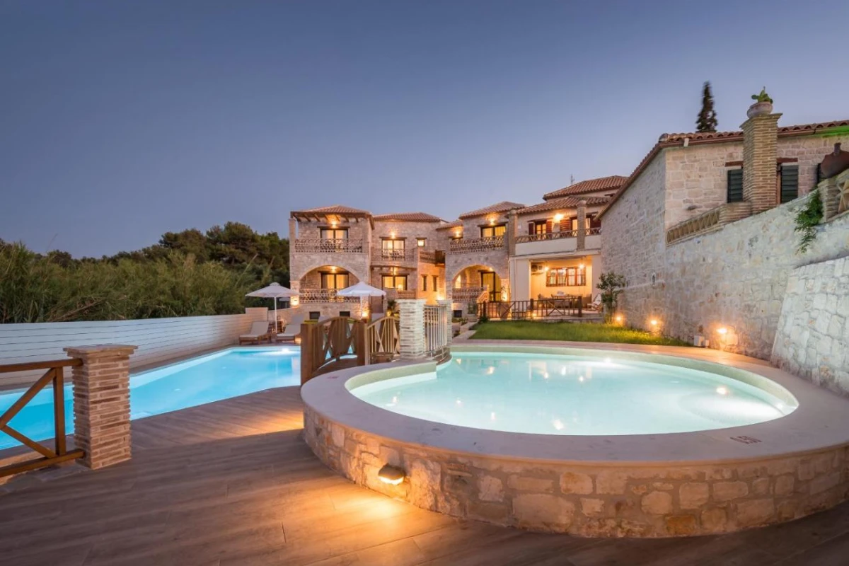 Porta Del Mar Beach Resort, an adults-only five-star boutique hotel in Vassilikos, Zakynthos, offers an intimate seaside escape along the serene shores of Meson Yerakarion, near Psarou Beach.