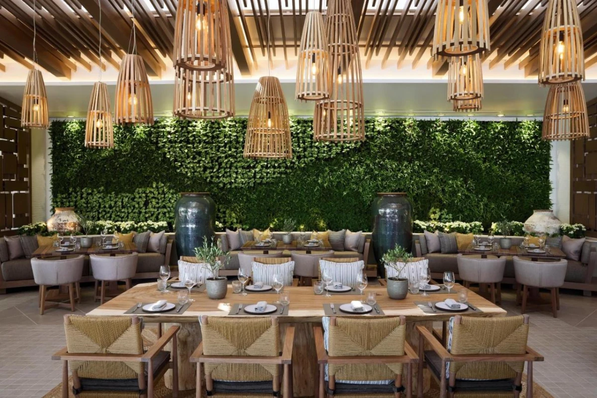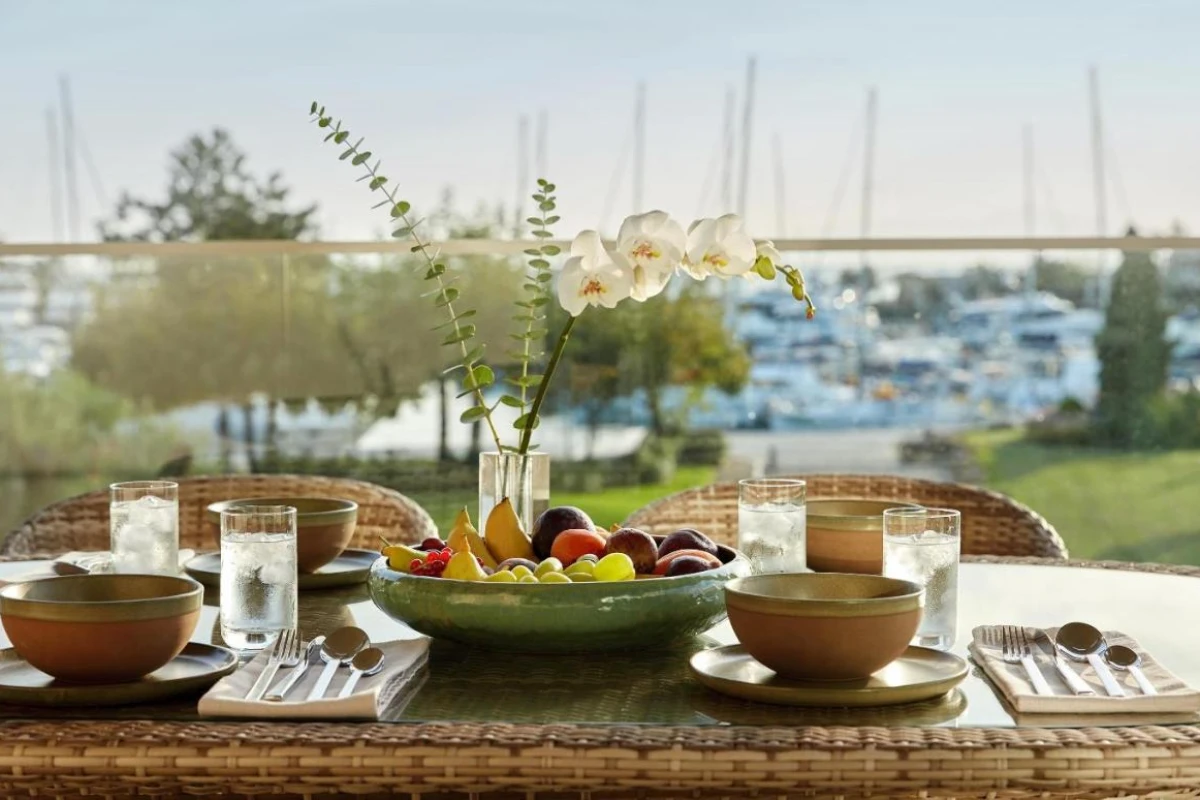Dining at Artemis Restaurant offers a lavish buffet breakfast with fresh fruits, local yogurts, and artisanal pastries, alongside Mediterranean specialties for dinner. El Puerto, led by Michelin-starred chef David Ibarboure, delivers authentic Spanish cuisine with a modern twist, featuring dishes like seafood paella and citrus-glazed pork, crafted from the freshest local ingredients. The Sea Breeze Bar serves expertly crafted cocktails, coffees, and light salads, enjoyed poolside or in the elegant lounge area. Guests can explore 24 additional dining venues across the Sani Resort through the Dine Around program, offering diverse culinary experiences. The breathtaking lagoon-style pool invites relaxation, while the brand-new spa provides rejuvenating massages and wellness treatments. Two private sandy beaches, water sports, a fitness centre, and tennis courts cater to active guests, with curated excursions like boat trips and nature walks immersing visitors in the 1,000-acre resort's forests and wetlands.