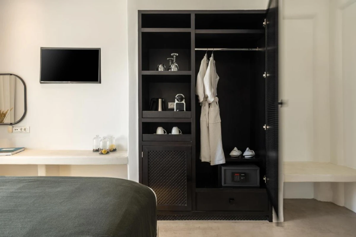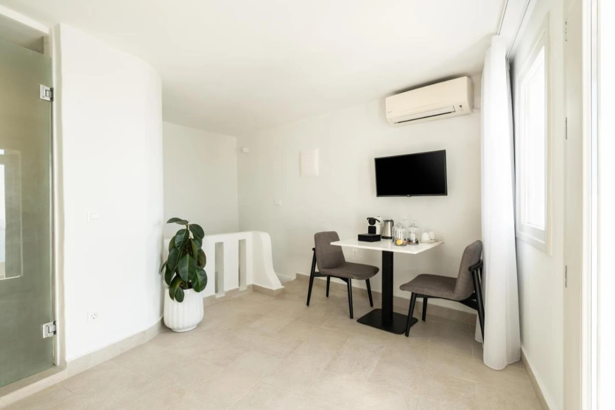 The 42 rooms and suites, designed with minimalist Cycladic elegance, feature clean lines, contemporary furnishings, and splashes of vibrant color. Each air-conditioned space includes flat-screen TVs, plush bedding, and luxurious bathrooms with rain showers, bathrobes, slippers, and premium toiletries. Private balconies unveil mesmerizing sunset vistas, with select suites offering intimate outdoor plunge pools for an indulgent escape. The thoughtful design blends authentic island charm with modern comfort, creating a tranquil sanctuary.
