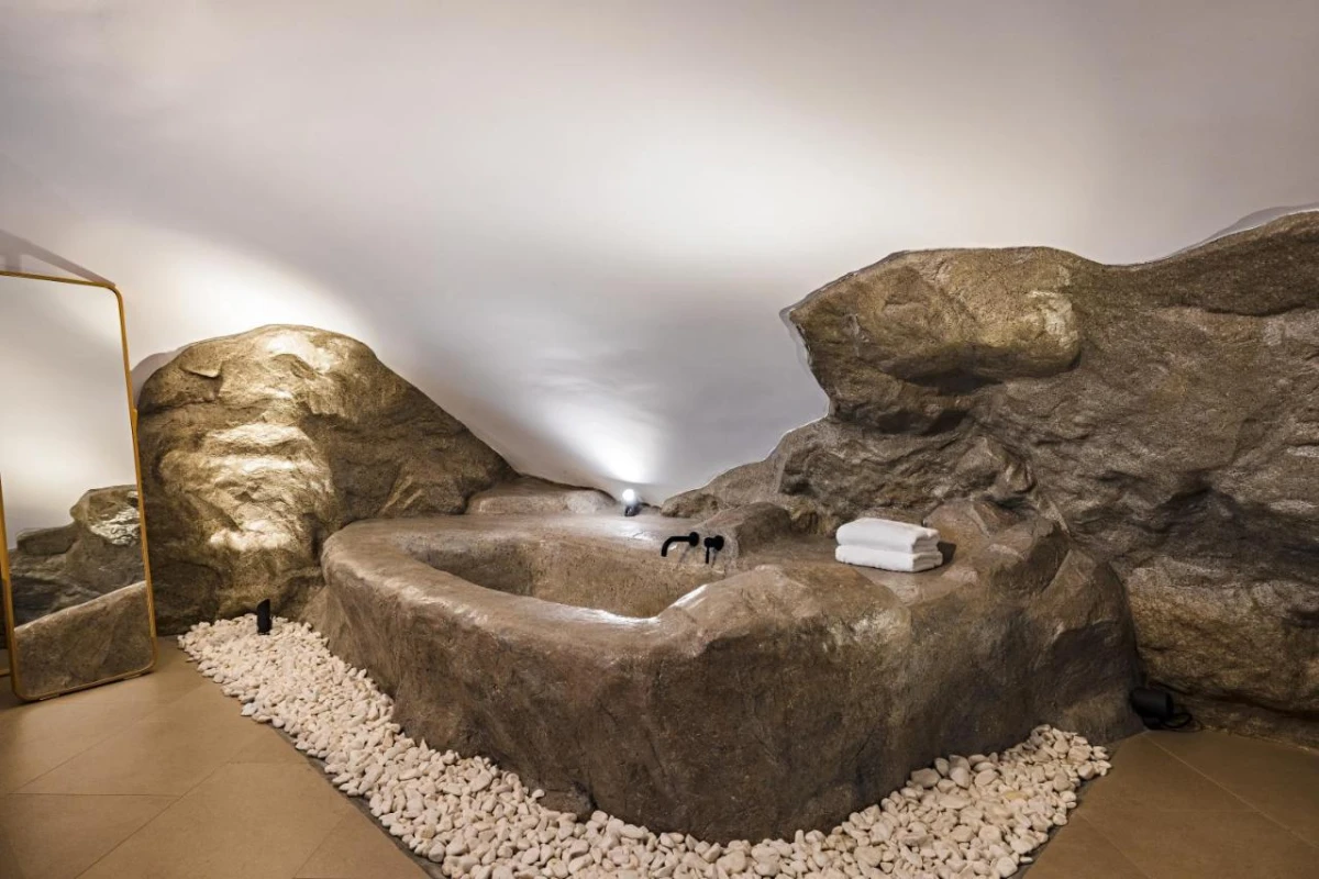 The poolside restaurant delights with Mediterranean cuisine, serving dishes like fresh seafood meze and citrus-glazed lamb, crafted from local ingredients and paired with Greek wines. A daily buffet breakfast features Greek yogurt, muesli, and island-inspired flavours, with an à la carte option available. The Night Bar and Pool Bar Lounge craft exquisite cocktails, enjoyed against the dramatic caldera backdrop, perfect for sunset or starlit evenings. A splendid outdoor pool invites relaxation, framed by the island's iconic scenery, while the wellness centre offers rejuvenating body treatments, a hammam, sauna, and state-of-the-art fitness suite. Bespoke services, including fresh flowers and meticulous maid care, reflect authentic Greek 'filoxenia.' Curated experiences, from private yacht tours to guided strolls through Oia's dreamy streets, immerse guests in Santorini's enchanting allure.