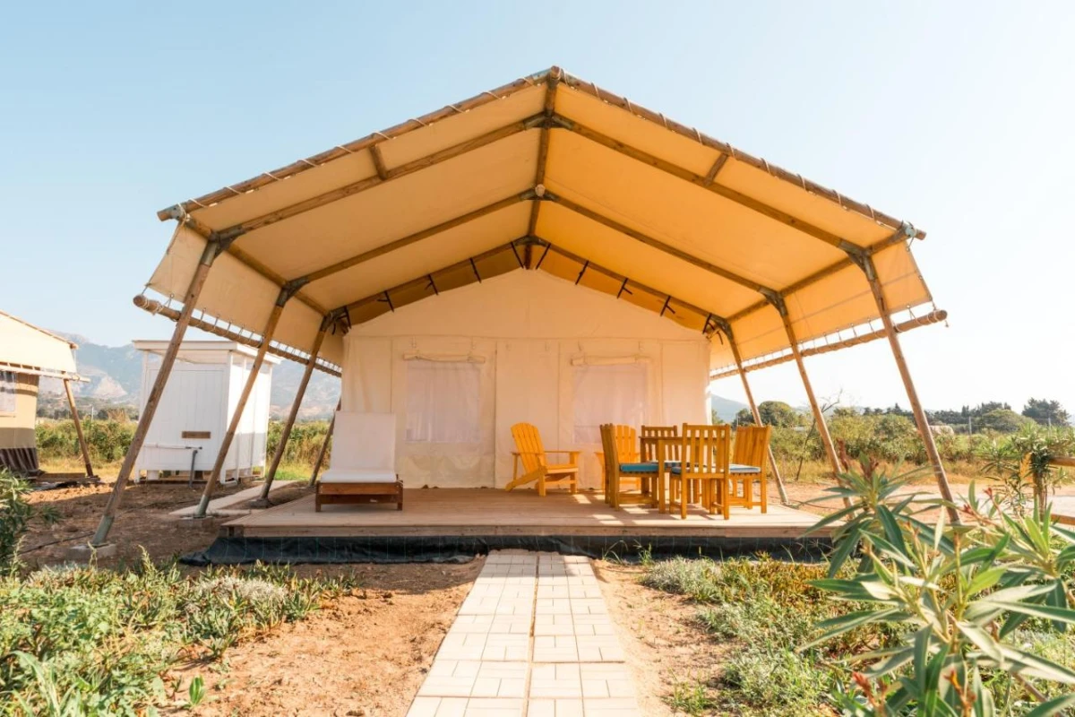 Sails on Kos Ecolux Tented Village, a modern four-star glamping retreat in Marmari, Kos, offers an eco-friendly escape nestled in verdant gardens, less than 1 km from Marmari Beach.