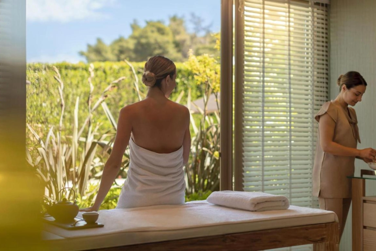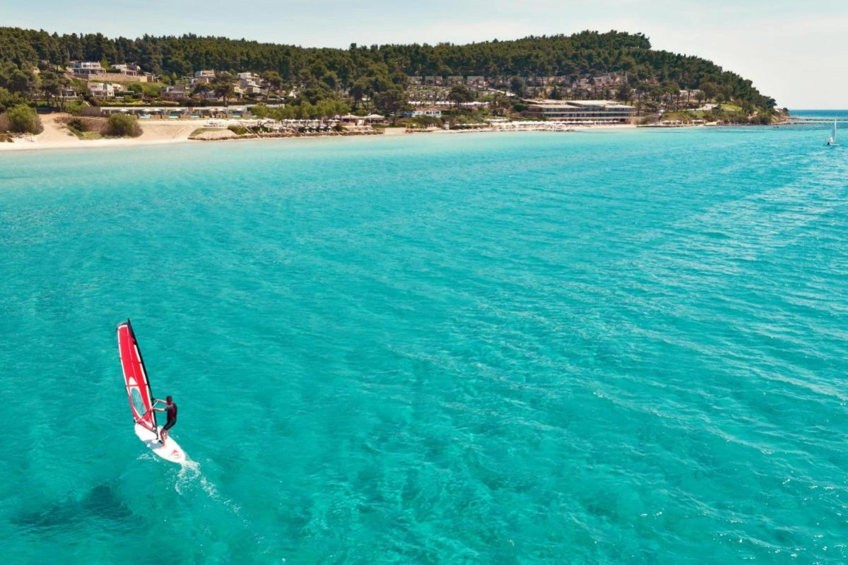 Olympos Restaurant delights with an international buffet for breakfast and dinner, featuring fresh fruits, local yogurts, and savoury dishes. Ouzerie serves traditional Greek cuisine with a contemporary twist, while Cabana offers flavours inspired by the Côte d'Azur. Pines delivers a modern farm-to-table Greek experience, and Club Lounge presents a Mediterranean-inspired menu. Guests can explore 24 additional dining venues across the Sani Resort through the Dine Around program. The Main Bar, Pines Bar with live music, and Club Lounge Pool Bar serve artisanal cocktails and light bites with breathtaking bay views. A private beach with white sands and a Blue Flag award invites tranquil lounging, while indoor and outdoor pools, a spa with aromatherapy and steam rooms, and a gym cater to wellness. Curated activities like windsurfing, tennis, and guided tours to the Sani Wetlands immerse guests in the region's natural beauty.