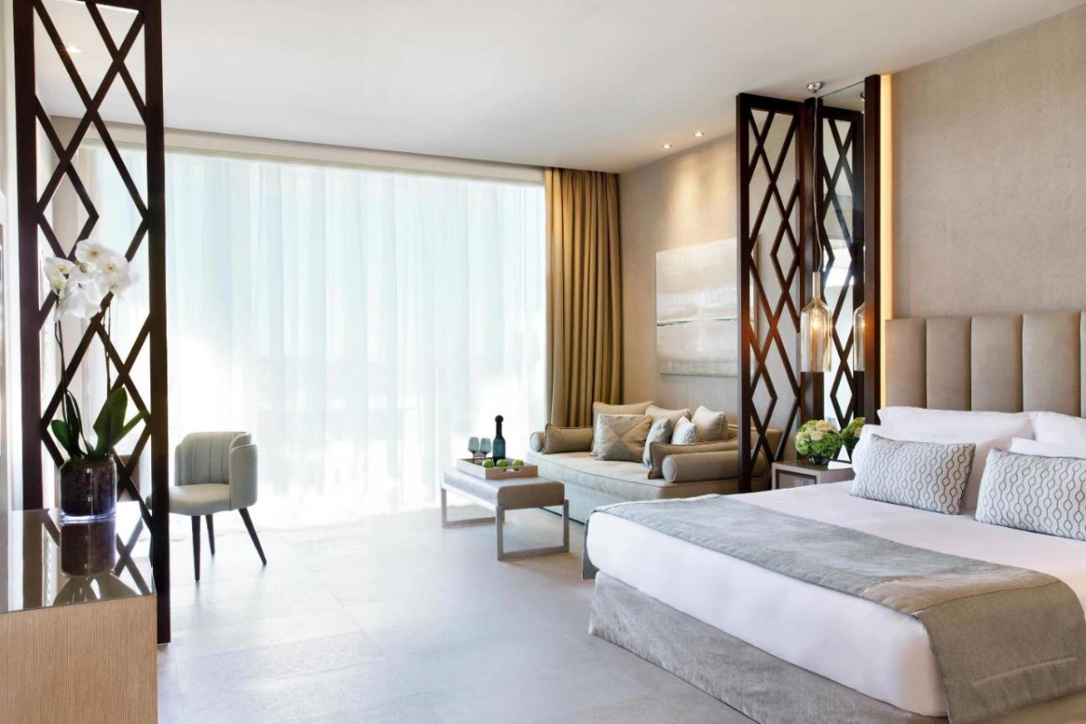 The Market restaurant offers international brasserie-style dining with fresh, local dishes like grilled seafood and savoury meze, while Beach House serves Mediterranean cuisine with beachfront views. Fresco delivers elegant Italian fine dining, paired with a curated wine selection at its dedicated Wine Bar. A daily breakfast buffet delights with Greek yogurts, fruits, and artisanal pastries. The Lobby Bar and Dunes Pool Bar, with live music, craft classy cocktails and light bites, perfect for savouring under the Mediterranean sun. Guests can explore 24 additional dining venues across the Sani Resort through the Dine Around program. The largest heated pool in Greece, spanning 3,500 m², invites relaxation, while the private beach with king-size umbrellas offers serene lounging. The D Spa features six treatment rooms, a couples' suite with steam bath, a Thai massage cabin, hot tub, and fitness centre, offering rejuvenating therapies. Activities like tennis, water sports, and curated excursions to the Sani Festival or nearby wetlands immerse guests in the region's vibrant allure.