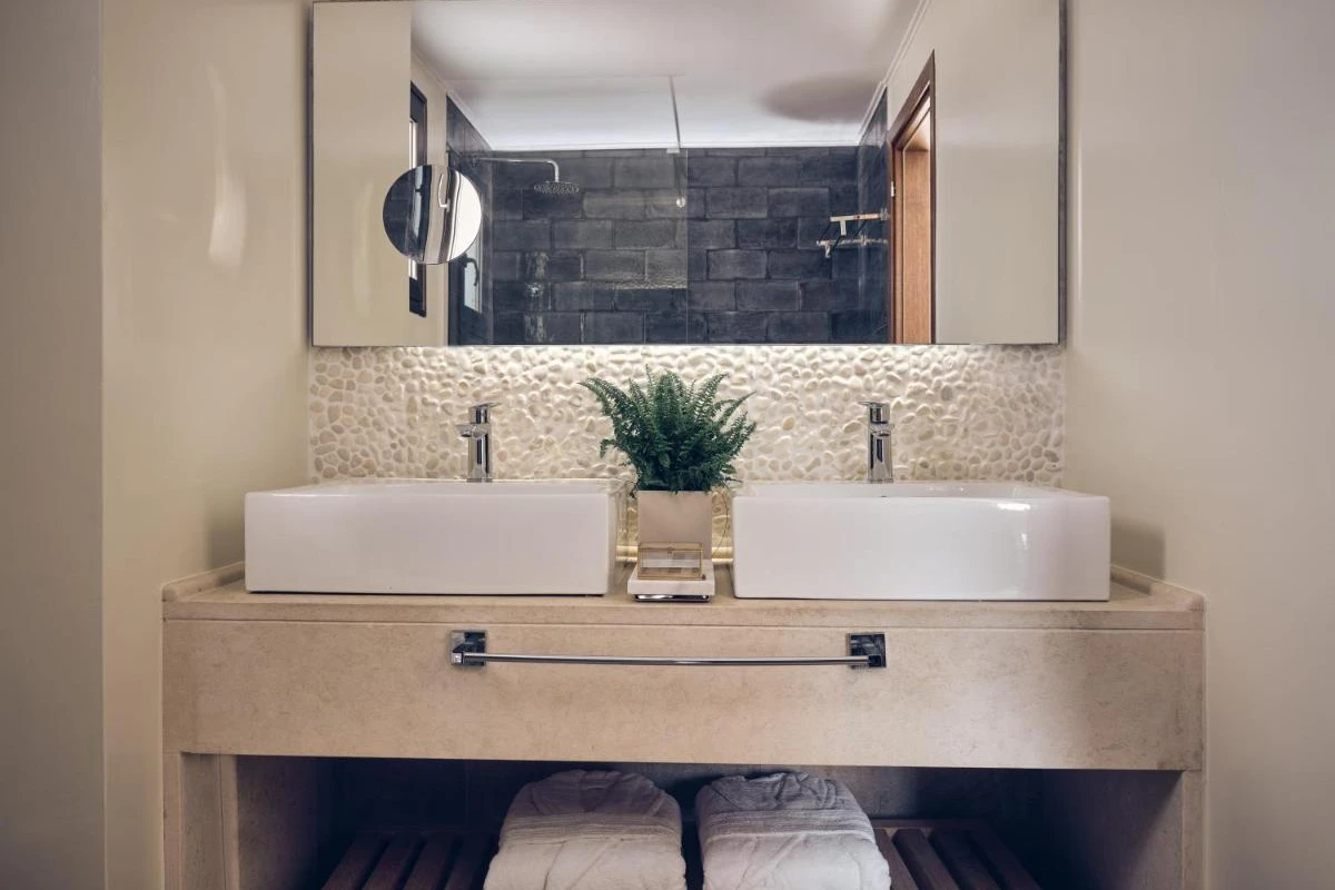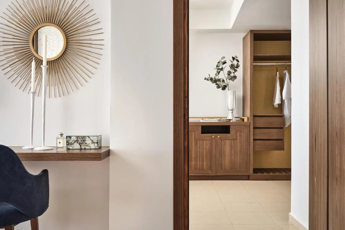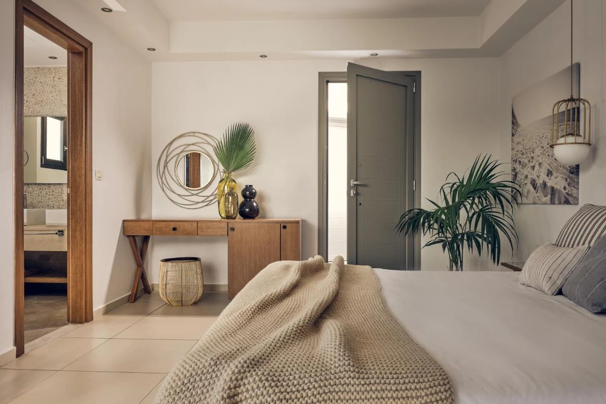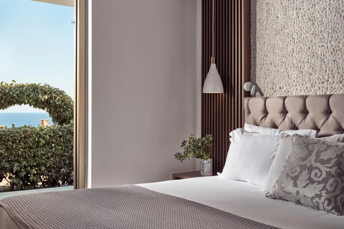 Spanning 70 acres, the resort's 190 rooms, suites, and villas feature warm, neutral tones, contemporary furnishings, and air-conditioned comfort. Each includes flat-screen TVs, minibars, and spacious bathrooms with dual wash basins, premium toiletries, and bathrobes. Private balconies or terraces unveil breathtaking sea or garden views, creating a tranquil sanctuary. Guests are greeted with a welcome drink, enhancing the warm, personalized service.