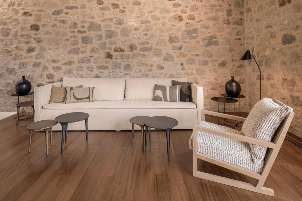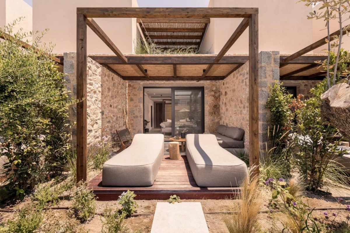 The 47 opulent suites feature air-conditioned comfort, flat-screen TVs, coffee machines, minibars, safes, electric kettles, wardrobes, and private bathrooms with rain showers, premium toiletries, and bathrobes. Each suite opens to a patio or balcony, with select units offering private pools or roof garden terraces with breathtaking Aegean Sea or garden views, creating a tranquil haven for refined relaxation.