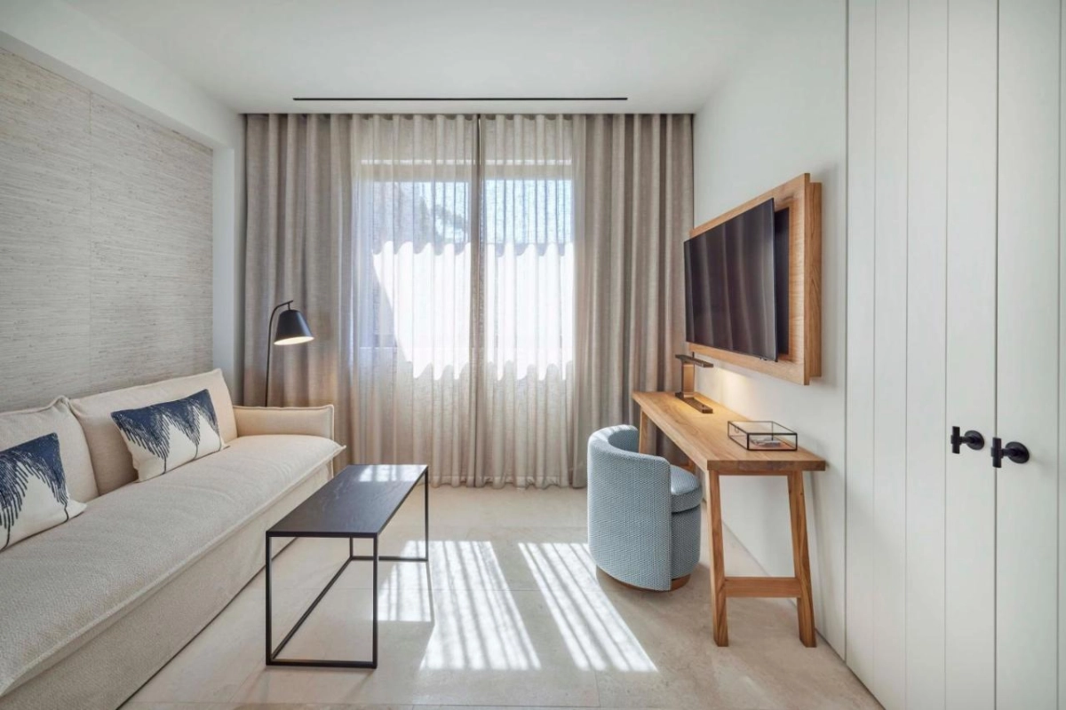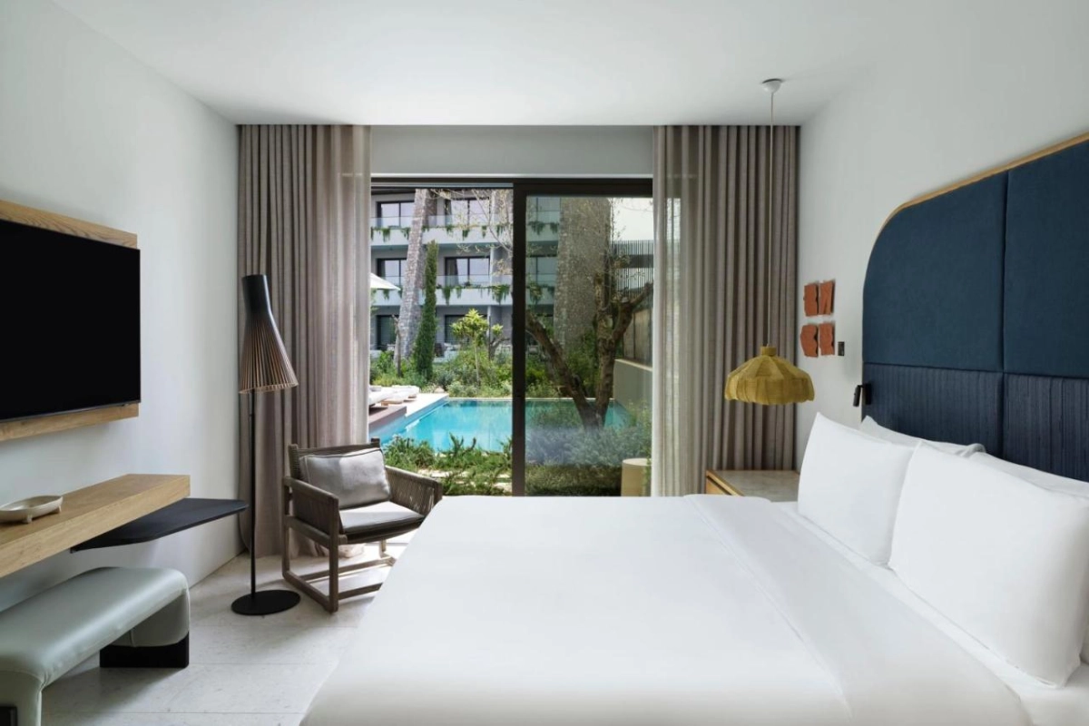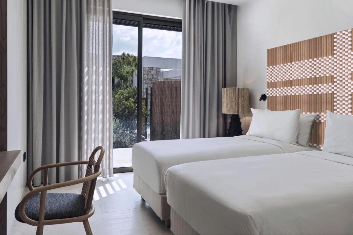 Many rooms capture the Ionian's azure sparkle, kissed by briny breezes. The contemporary aesthetic, blending bold textures with coastal warmth, conjures restful escapes for travellers seeking a spirited blend of relaxation and adventure.