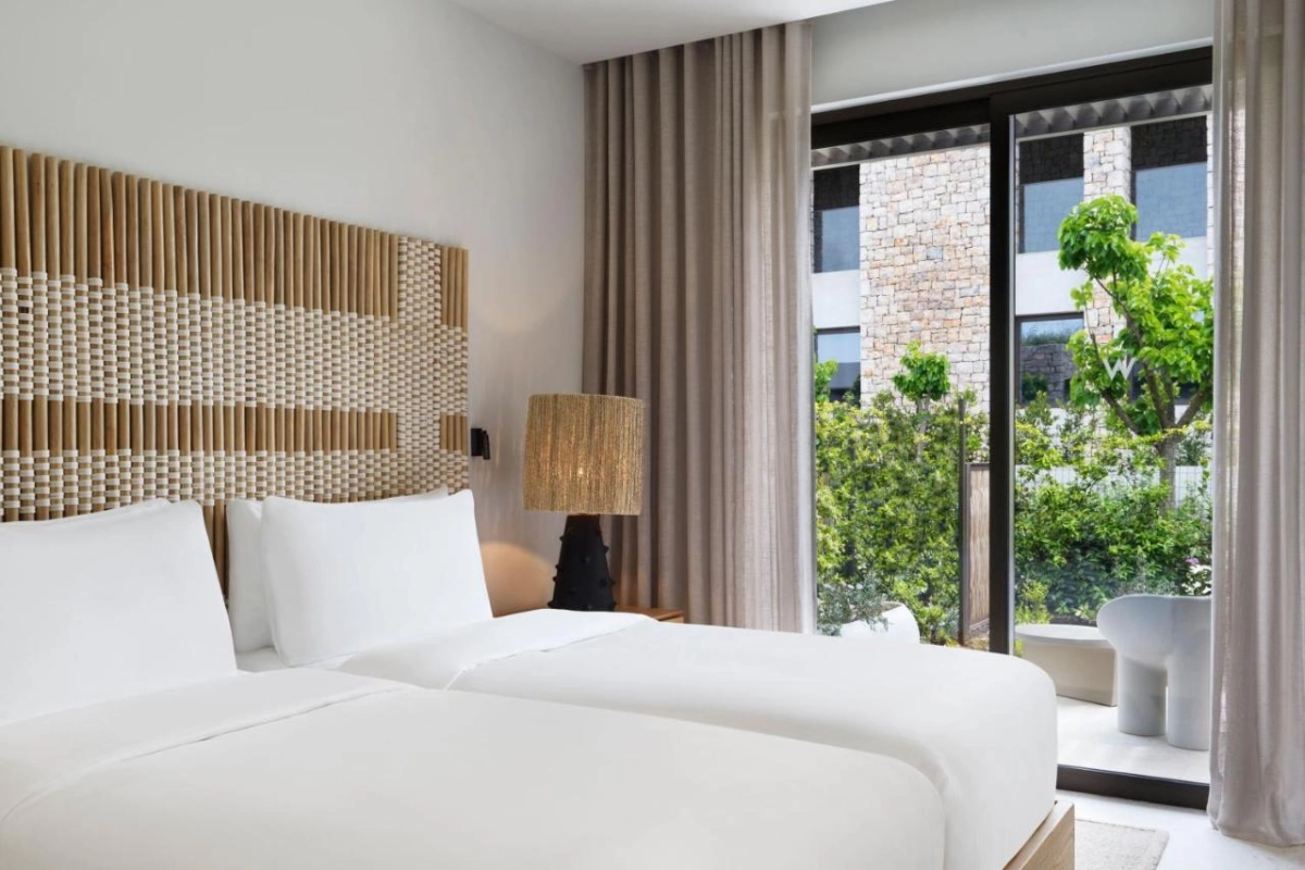 W Costa Navarino, a captivating five-star retreat in Pylos, beguiles with its vibrant coastal allure, nestled 300 meters from Gialova Beach, where lush gardens and a private shoreline weave a dynamic haven of modern luxury and Peloponnesian serenity.