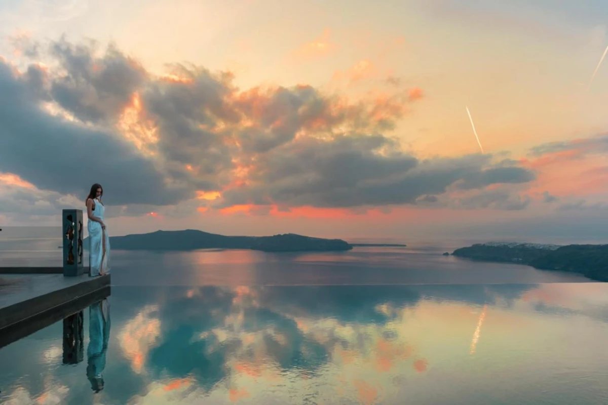 The estate's design celebrates water, with pool-lakes and channels flowing through the grounds, culminating in a heated infinity pool that mirrors the azure sky. Dining at the cliffside restaurant elevates Greek cuisine, offering fresh seafood and local specialties savoured against the caldera's dramatic backdrop. The adjacent bar crafts cocktails infused with island herbs, perfect for sipping as the sun dips below the horizon. Cultural experiences, from wine tastings to guided tours of nearby archaeological sites, immerse guests in Santorini's rich heritage.