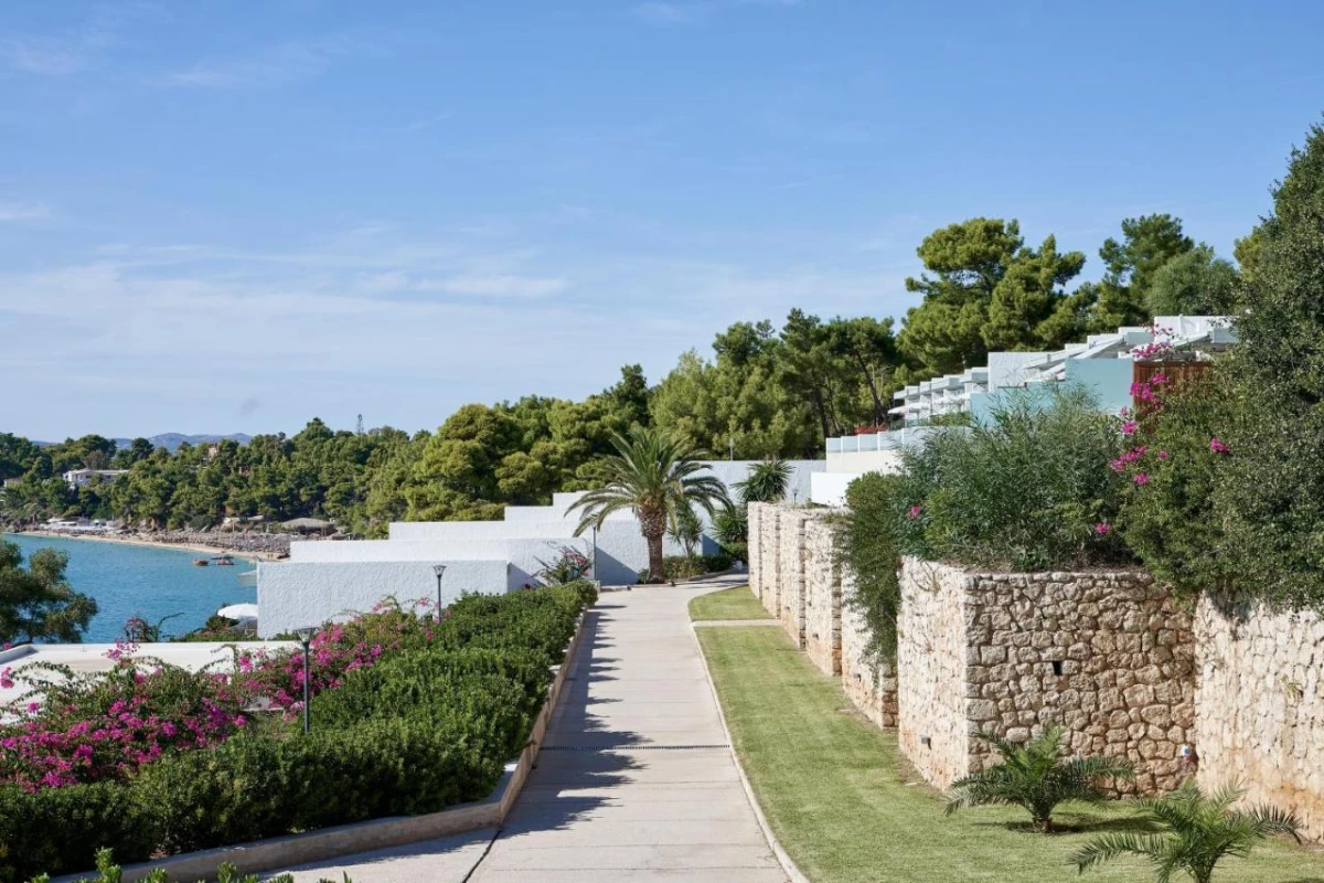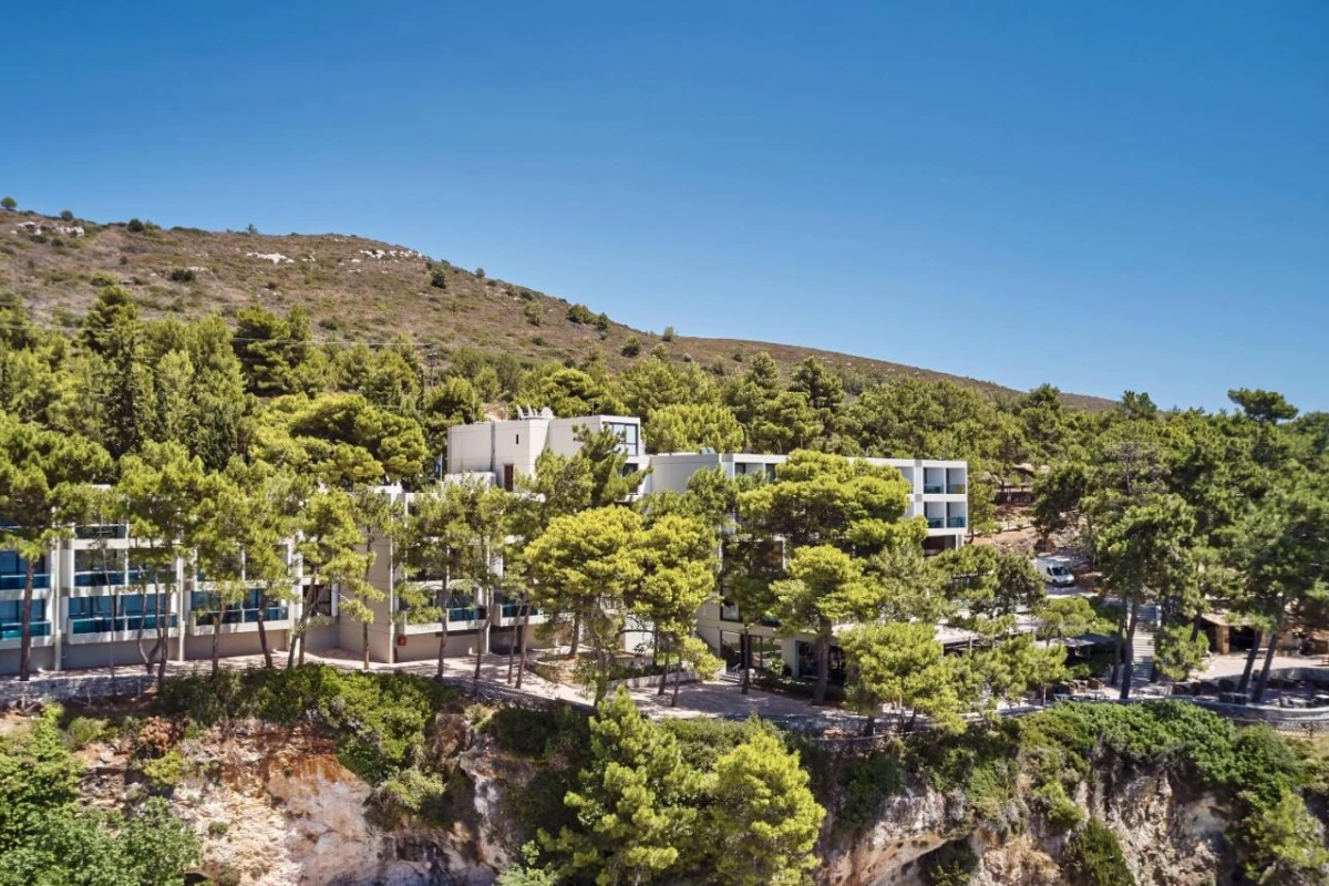 White Rocks Hotel, a five-star eco-conscious retreat in Lassi, Kefalonia, designed by acclaimed Greek architect Nicos Valsamakis, nestles on a 50-acre hillside, blending seamlessly with its pine-forested surroundings and offering captivating views of the Ionian Sea.