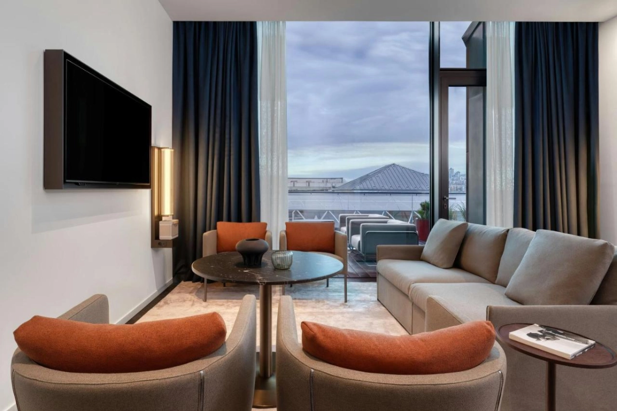 The 216 guestrooms and suites blend past and present with stylish flair, featuring air-conditioned comfort, plush bedding, flat-screen TVs, and coffee machines, alongside private bathrooms with premium toiletries. Select rooms offer balconies with sweeping city views, while thoughtful details like wardrobes and kettles enhance functionality. The Dorothea Hotel Spa envelops guests in tranquility, boasting an indoor pool, soothing sauna, and bespoke treatments, complemented by a modern fitness centre to invigorate. Evening entertainment adds a lively touch to the sophisticated ambiance.