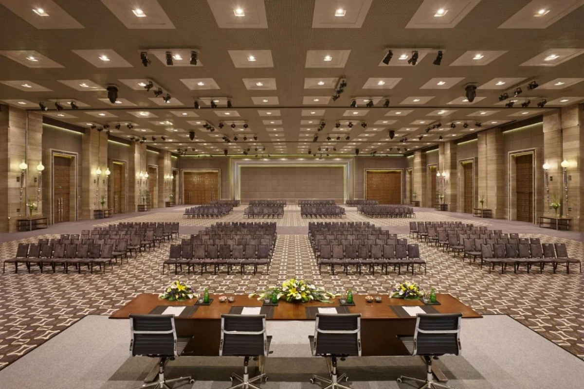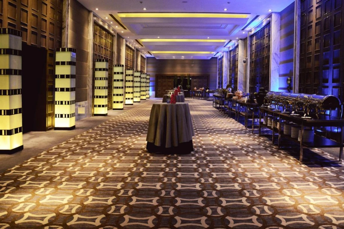Dining at Hyatt Regency Gurgaon is a global culinary adventure. Kitchen District, the signature multi-cuisine restaurant, serves an array of Indian, Asian, and continental dishes, complemented by a lavish breakfast spread with vegan options. SHIN'YA crafts Japanese delicacies paired with handcrafted cocktails, while The Lounge offers artisanal pastries and freshly brewed coffee in a relaxed setting. The outdoor pool invites refreshing swims amidst lush greenery, and the tranquil spa rejuvenates with tailored treatments. A 24-hour gym keeps guests energized, and one of the region's largest pillarless ballrooms hosts grand weddings and corporate events with bespoke catering, weaving Gurgaon's dynamic energy into every occasion.