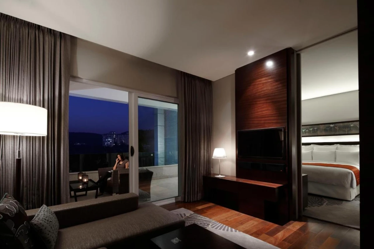 The 297 rooms and suites, designed with modern elegance, feature plush bedding, 65, 55, or 39-inch flat-screen TVs, and marble bathrooms with premium toiletries. Spacious layouts include ample workspaces, seating areas, minibars, and tea/coffee makers, with many rooms offering stunning views of Pune's cityscape or the Maharashtra mountains.