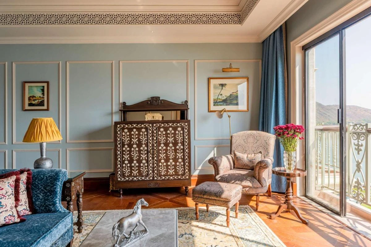 Raffles Udaipur, a five-star retreat on a 21-acre private island in Udai Sagar Lake, Lakāwās, blends Indo-Saracenic elegance with contemporary luxury, offering a serene escape in Rajasthan's heart.