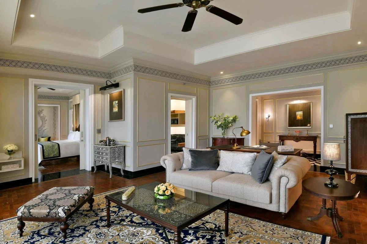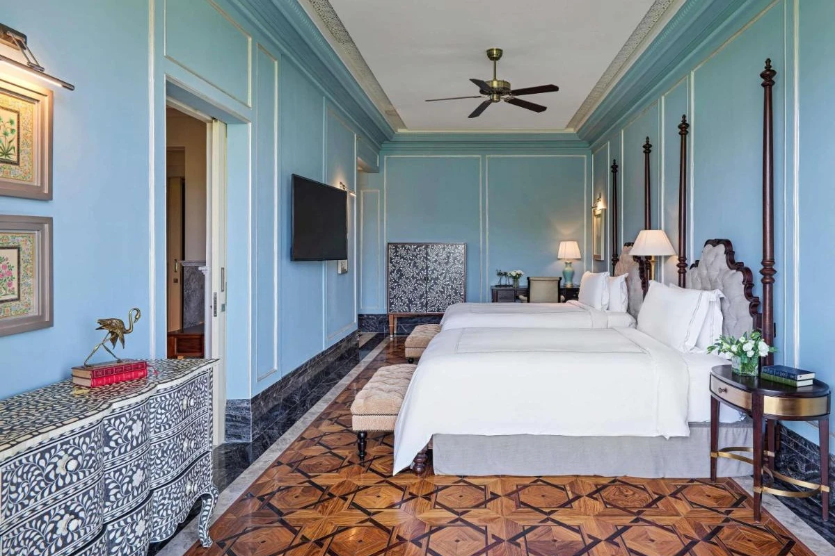 Dining at Raffles Udaipur is a culinary journey. Sawai Kitchen revives royal Rajasthani recipes with seasonal produce, while Raffles Patisserie serves artisanal coffee and homemade cakes. The Writers Bar offers a signature high tea with local jams, and Long Bar crafts the Udaipur Sling, a cocktail inspired by Rajasthan's spicy laal maas. The temperature-controlled outdoor pool, framed by Baroque gardens, invites leisurely swims, while the 12,000-square-foot Raffles Spa rejuvenates with Ayurvedic and aromatherapy treatments using natural ingredients like Kashmiri lavender. A fitness centre, tennis court, and activities like croquet or temple treks immerse guests in Udaipur's cultural and natural splendor.