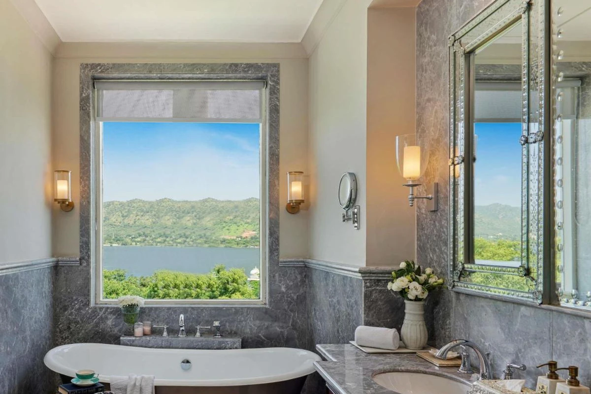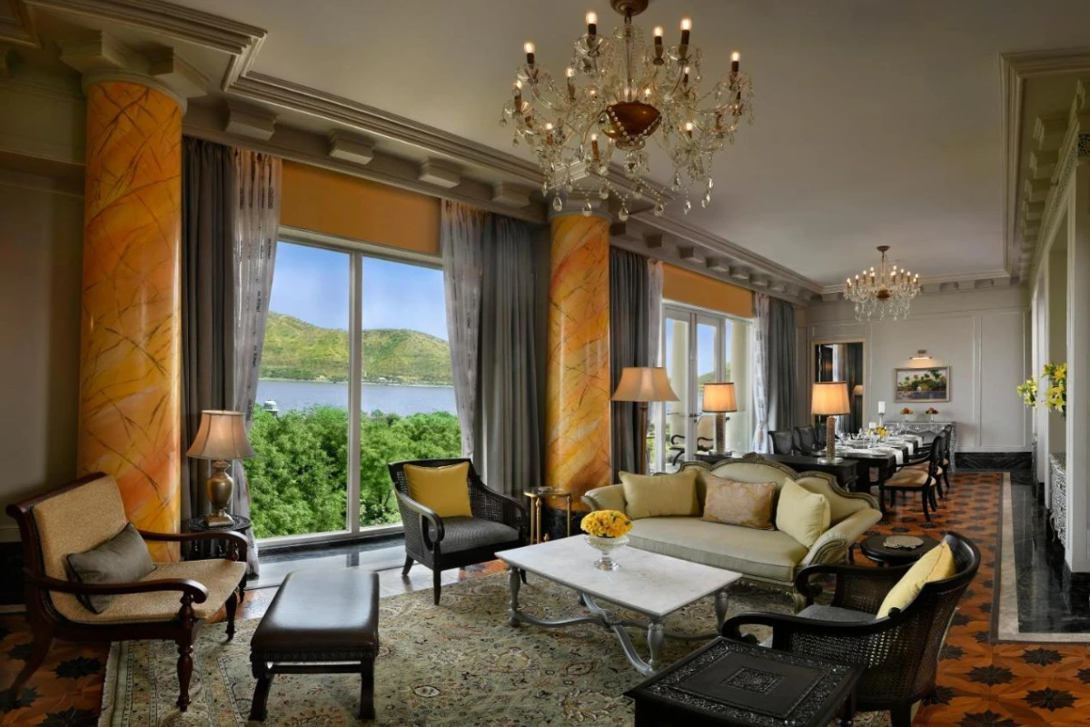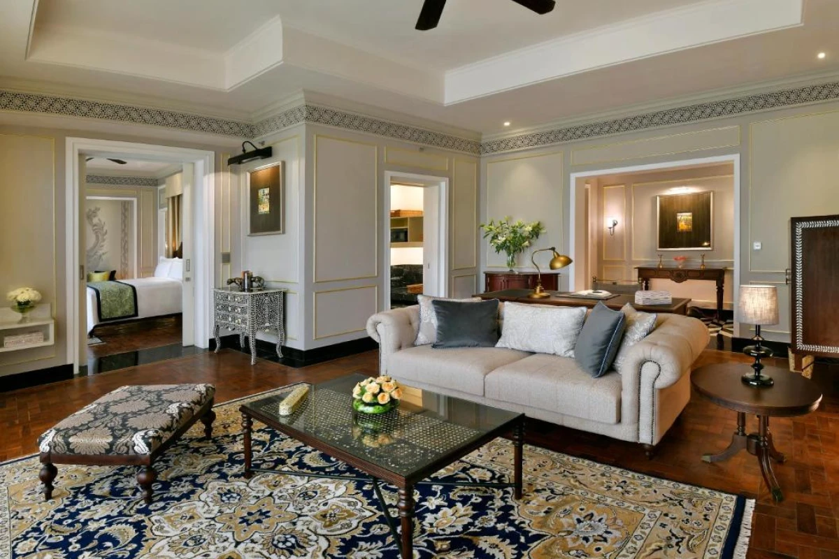 The 101 rooms and suites, adorned with handcrafted furniture and local artworks, feature plush bedding, flat-screen TVs, electric kettles, and spacious bathrooms with premium toiletries. Select suites offer private plunge pools and balconies with lake views, creating a regal haven for discerning travellers.
