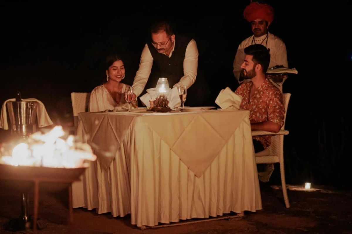 Dining at The Rawla Narlai is a celebration of Rajasthan's culinary heritage. The on-site restaurant serves authentic regional dishes alongside select international fare, crafted with fresh, local ingredients, enjoyed in a regal dining hall or under the stars. A unique Stepwell Dinner experience unfolds at a 1,100-year-old stepwell, illuminated by flickering oil lamps, offering traditional cuisine in a mystical, nature-embraced setting. The seasonal outdoor pool invites refreshing swims with mountain vistas, while curated activities, from leopard safaris to village walks, immerse guests in the region's wild and cultural allure. A serene spa offers rejuvenating treatments, complementing the retreat's peaceful ambiance.
