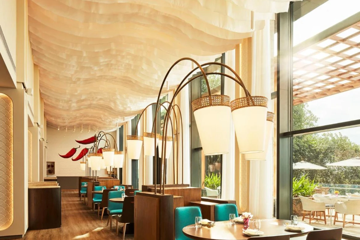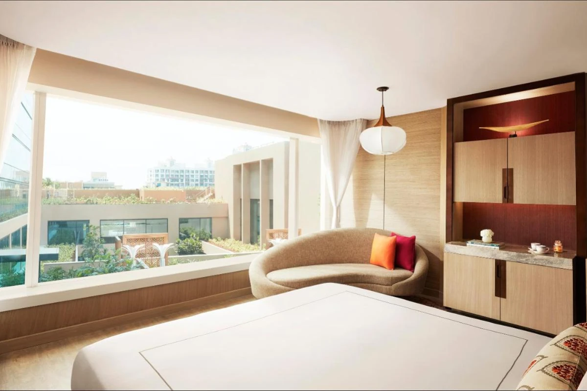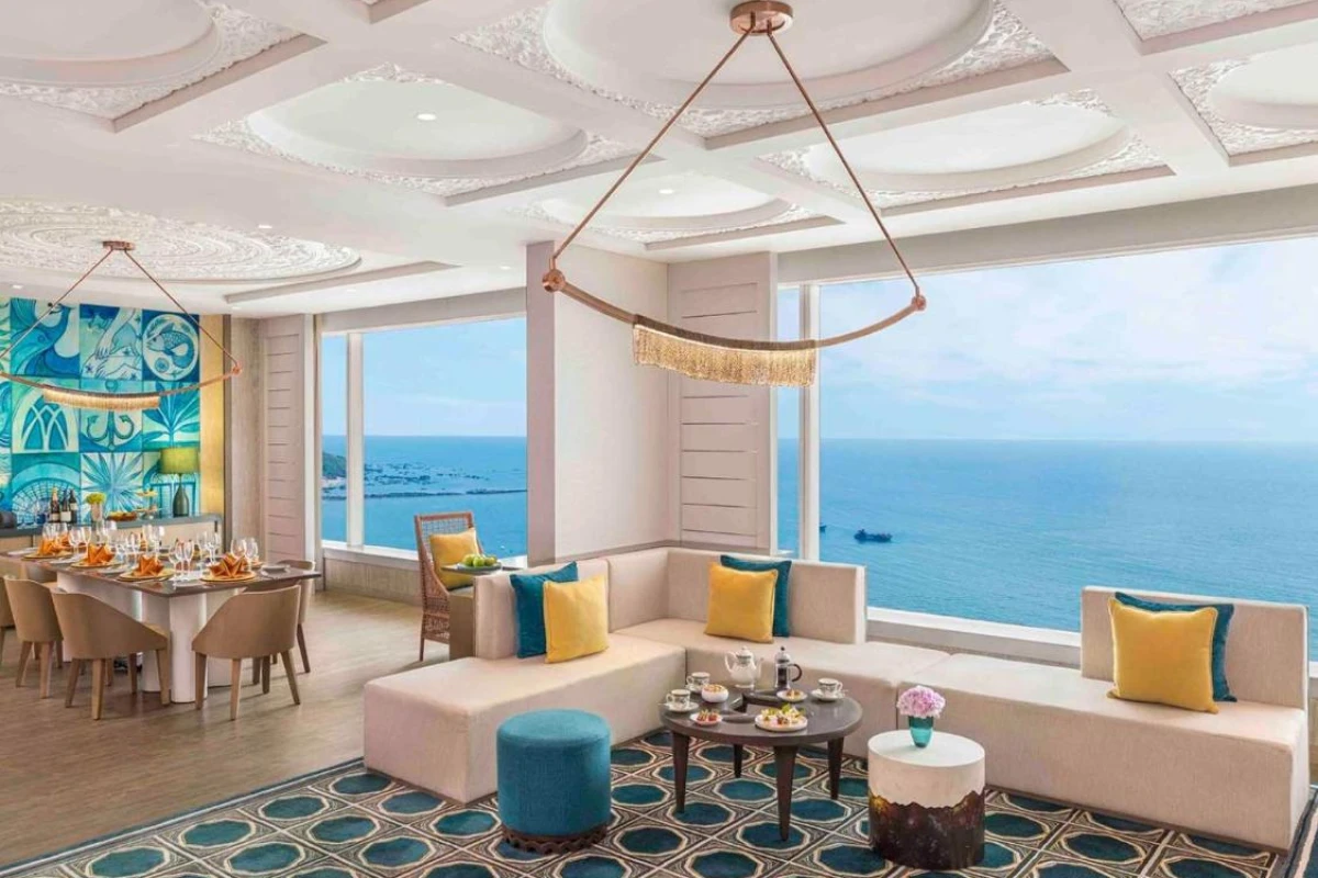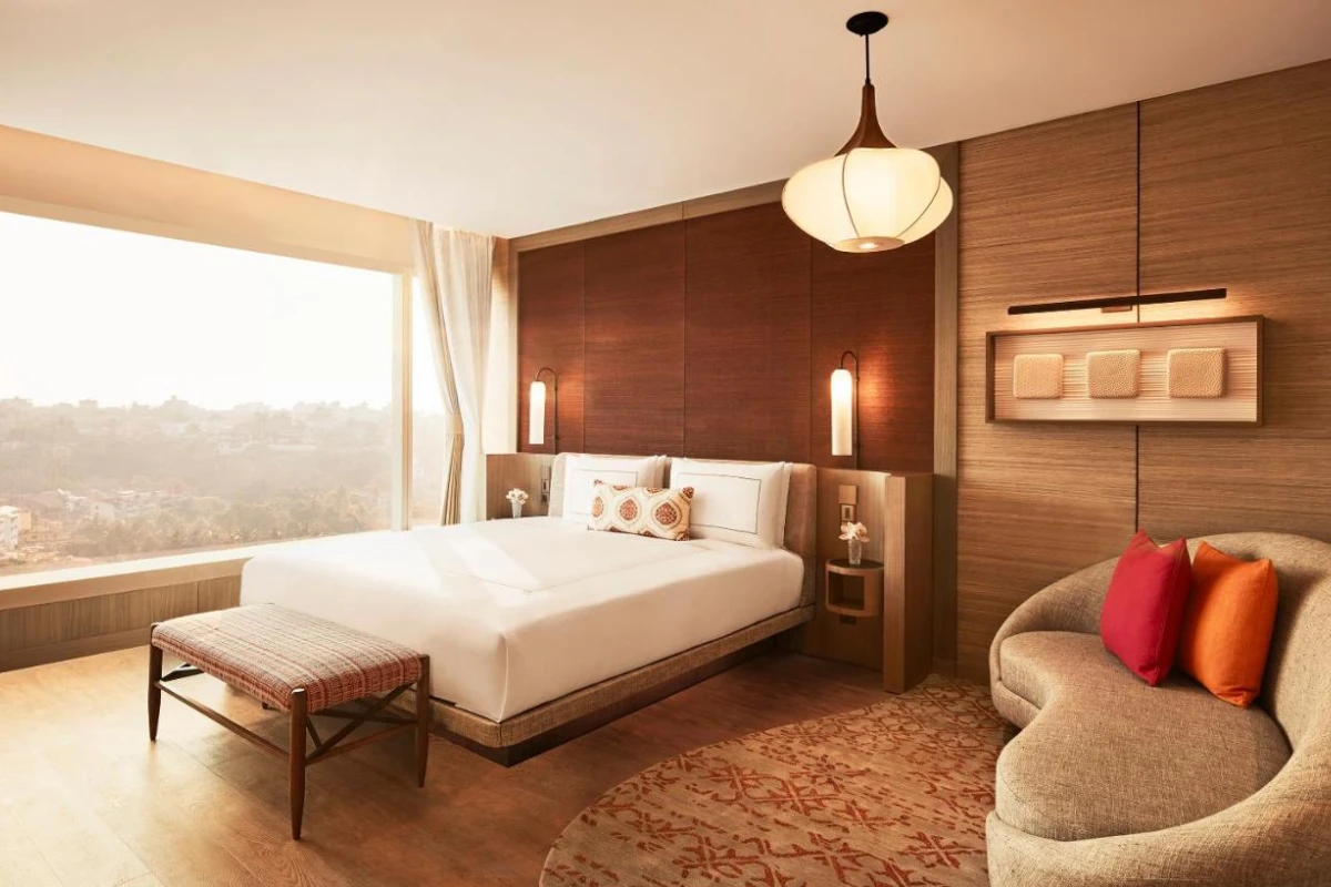 The 282 rooms and 17 suites, many sea-facing, feature plush bedding, modern amenities, and private balconies with views of the Zuari River or lush gardens. Spacious bathrooms with premium toiletries create a serene escape, while Club Rooms and Suites offer exclusive lounge access, blending luxury with coastal elegance.