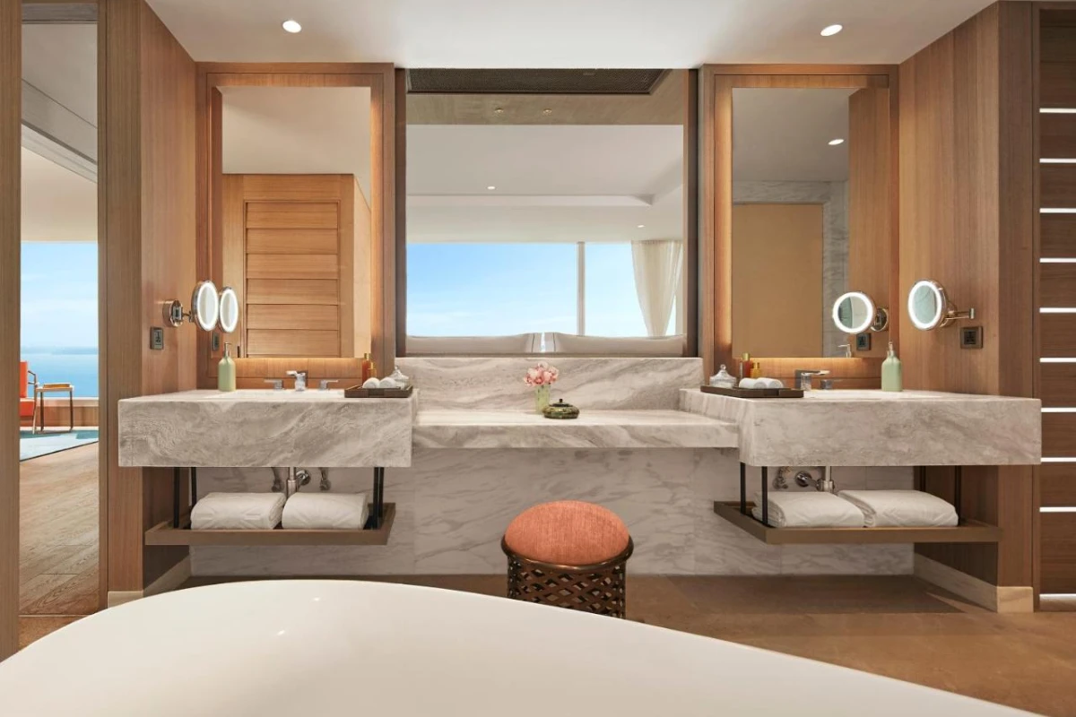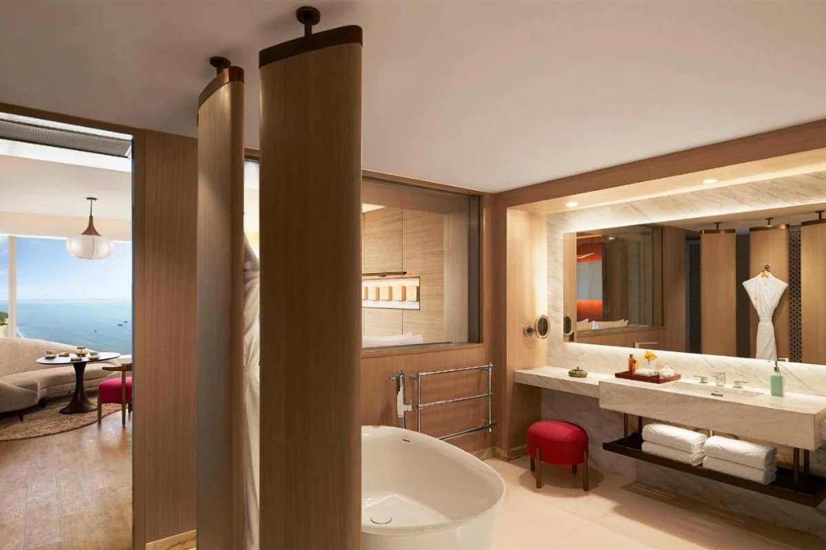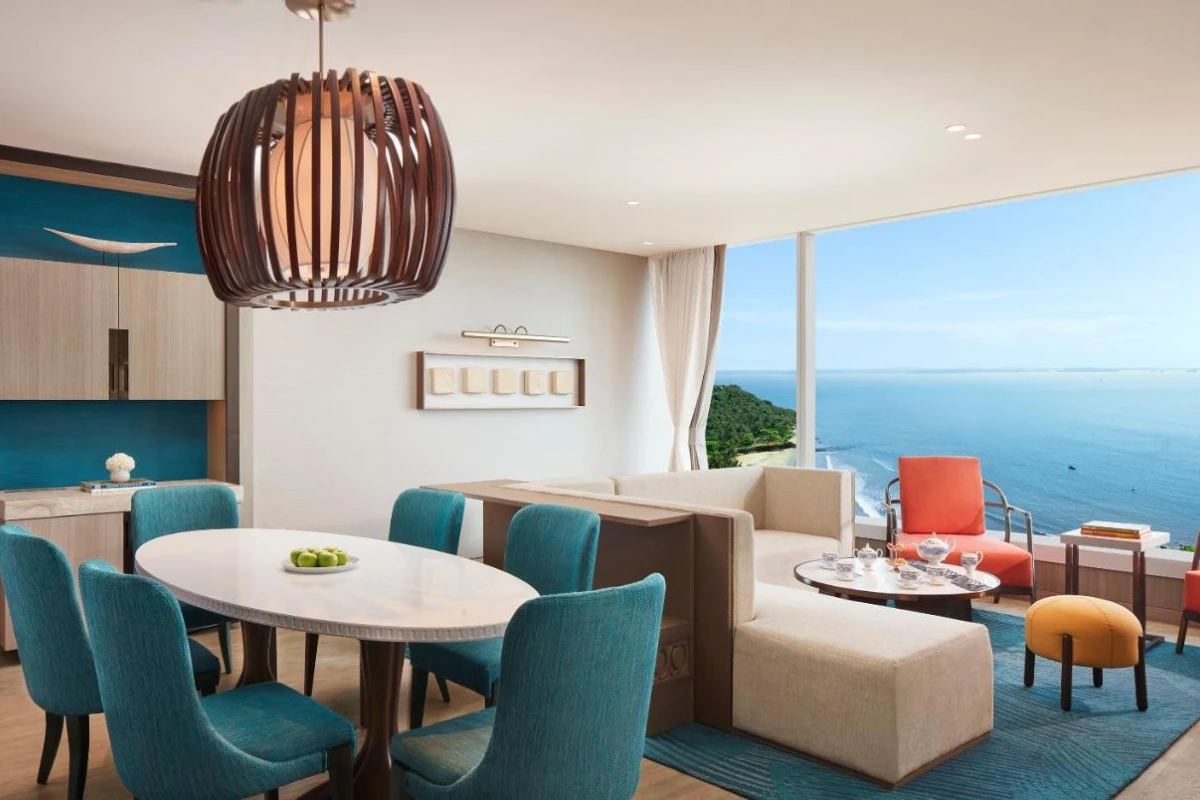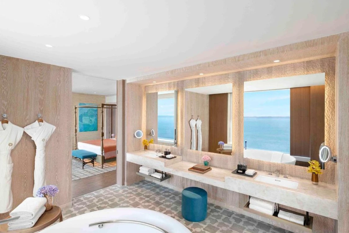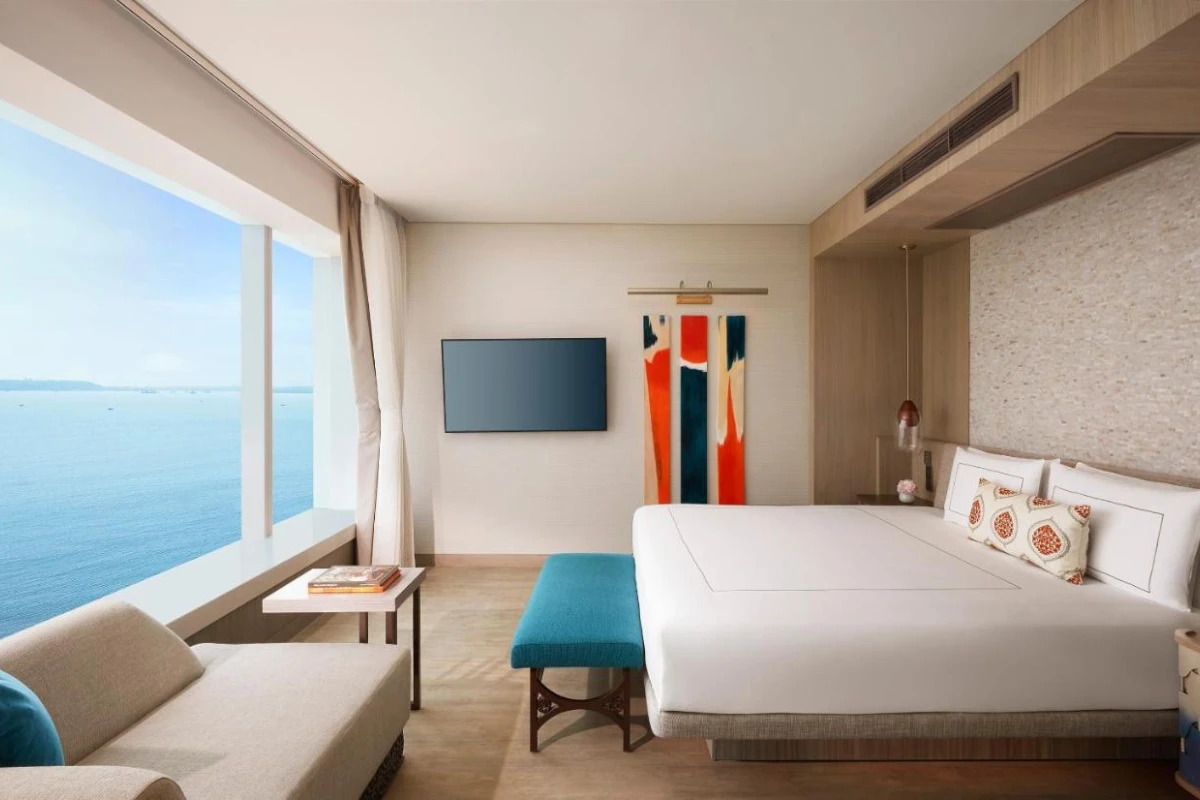 The 282 rooms and 17 suites, many sea-facing, feature plush bedding, modern amenities, and private balconies with views of the Zuari River or lush gardens. Spacious bathrooms with premium toiletries create a serene escape, while Club Rooms and Suites offer exclusive lounge access, blending luxury with coastal elegance.