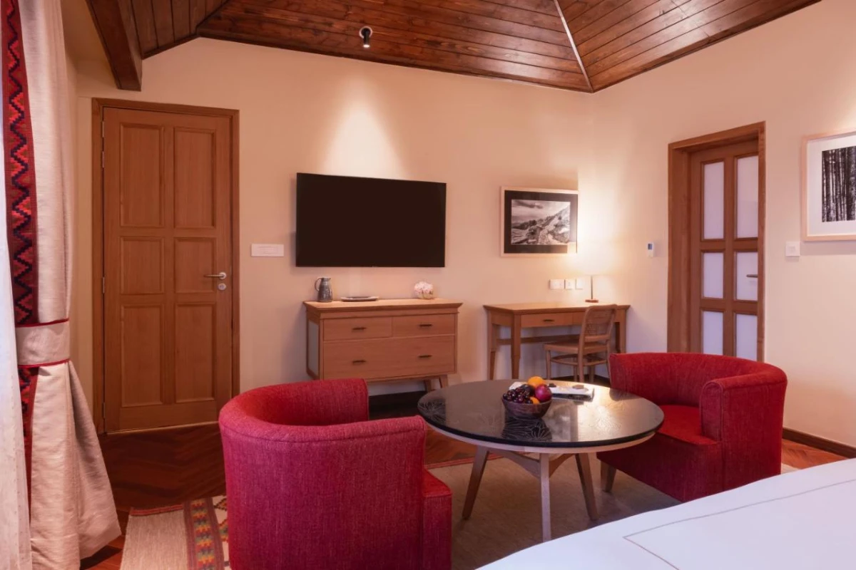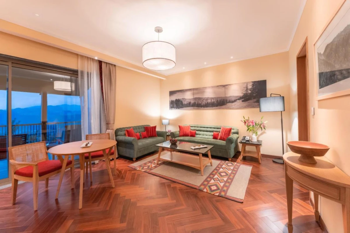 The 99 rooms, designed with contemporary elegance, feature plush bedding, flat-screen TVs with cable channels, electric kettles, and private bathrooms with showers and premium toiletries. Select rooms offer balconies with breathtaking mountain views, blending modern comfort with the tranquil charm of the hills.