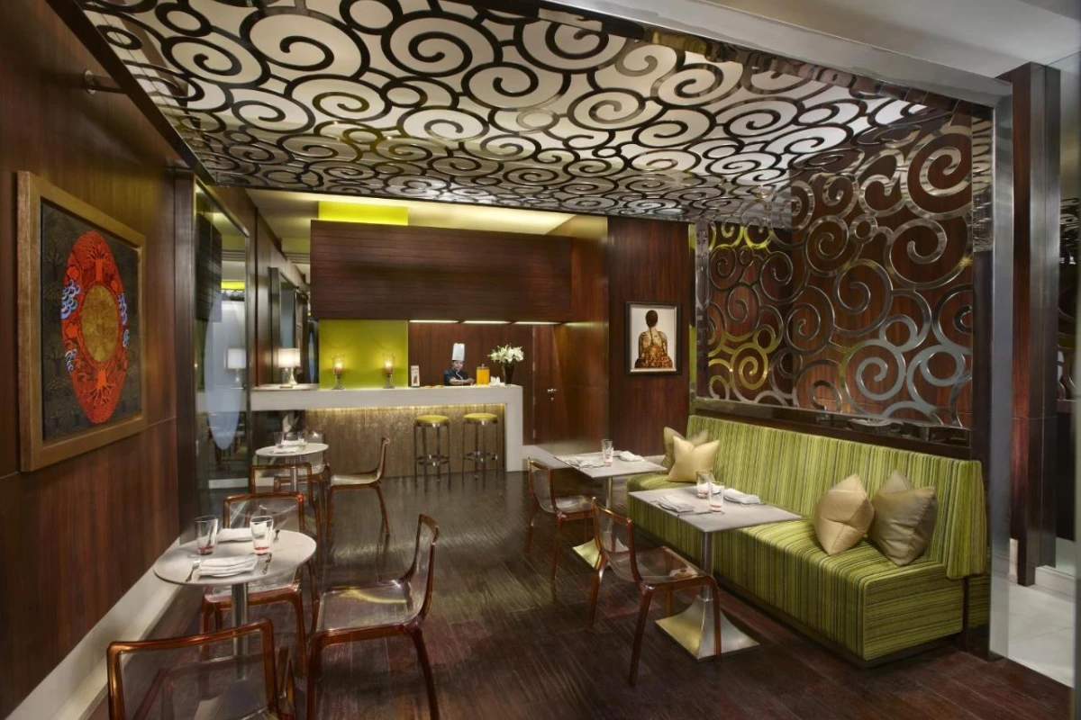 Dining at The Leela Palace New Delhi is a culinary odyssey, with MEGU presenting modern Japanese cuisine in an artful setting and Le Cirque delivering award-winning Franco-Italian dishes with sophisticated flair. The Qube, an all-day dining venue, blends international and local flavours in a luxurious ambiance, while Jamavar celebrates India's culinary heritage with exquisite fine-dining creations. The Library Bar, a high-energy destination, crafts inventive cocktails and fine spirits, beloved by the city's elite. The two-level spa offers a serene retreat with tailored treatments for men and women, a salon, café, sauna, steam room, and a state-of-the-art fitness studio. The city's only rooftop temperature-controlled swimming pool provides panoramic views, perfect for unwinding amidst Delhi's vibrant pulse.