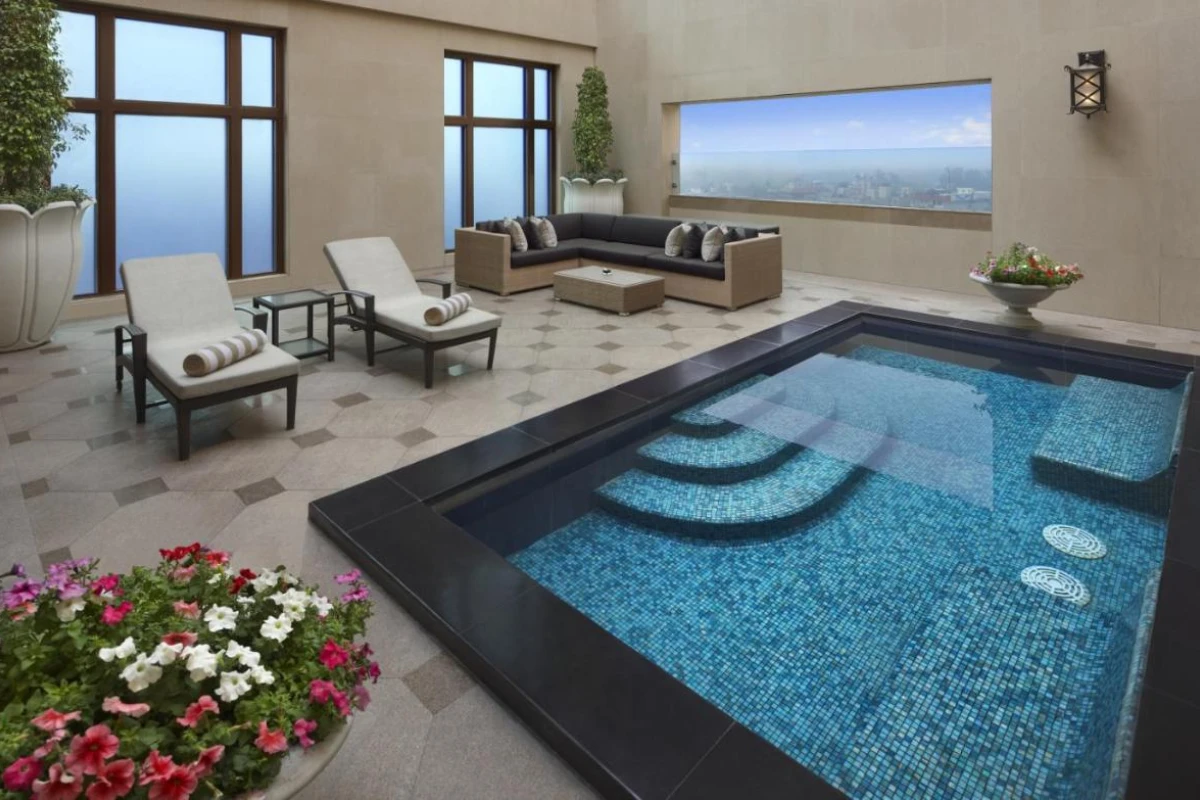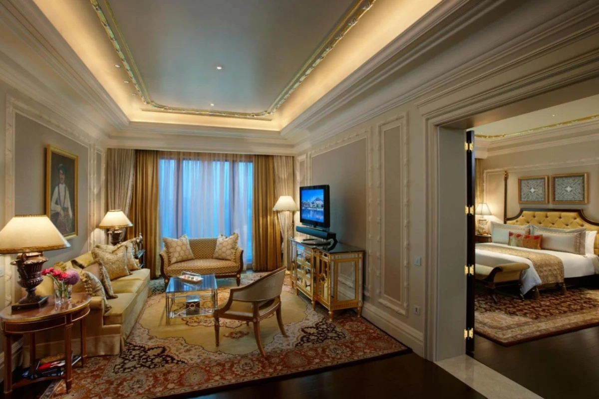 Each of the 254 rooms and suites, starting at a spacious 550 square feet, exudes refined comfort with wooden furnishings, high-definition flat-screen TVs with DVD players, and floor-to-ceiling windows framing views of the capital's skyline. Royal Club rooms and suites offer exclusive perks, including complimentary use of meeting rooms for up to two hours and access to cordial hours at the Club Lounge. The meticulous design, paired with world-class amenities, ensures a tailored experience for every guest.