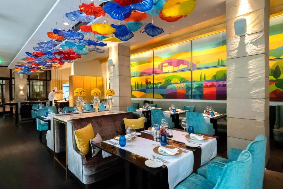 Dining at The Lodhi is a culinary masterpiece, with Elan Restaurant & Bar presenting a vibrant array of pan-Indian, Mediterranean, and Southeast Asian cuisines in a sophisticated setting, perfect for savouring under the capital's skyline. The hotel's world-class spa, featuring an exclusive Hammam, offers rejuvenating treatments, complemented by a stylist-curated salon, steam room, and sauna. Active guests enjoy a state-of-the-art gym, a 50-meter lap pool, three tennis courts, and two squash courts, with personal trainers on hand to elevate wellness routines. A refined cigar lounge and well-stocked library provide intimate spaces for relaxation, while versatile event venues cater to gatherings with seamless sophistication.