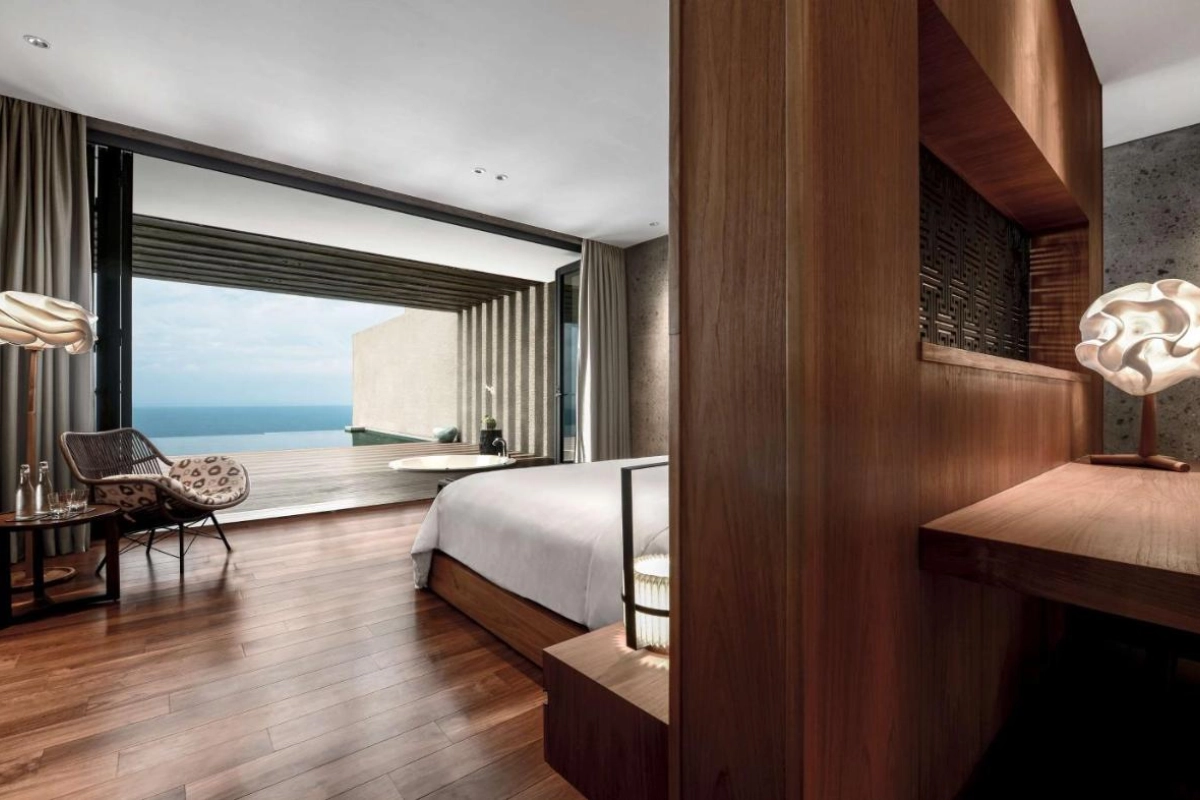 The Warung's open kitchen crafts authentic Balinese and Indonesian dishes, from fiery sambals to fresh seafood, while CIRE, perched 70 meters above sea level, delivers refined Western cuisine with panoramic views. A chic bar serves artisanal cocktails, enhancing the coastal dining experience. Guests can unwind in the 50-meter infinity pool, rejuvenate at the spa with indulgent treatments, or explore the on-site art gallery showcasing modern Indonesian works. The 24-hour gym, complete with a yoga and Pilates studio, supports wellness, while complimentary yoga sessions, snorkeling, cycling, and curated cultural tours invite adventure.