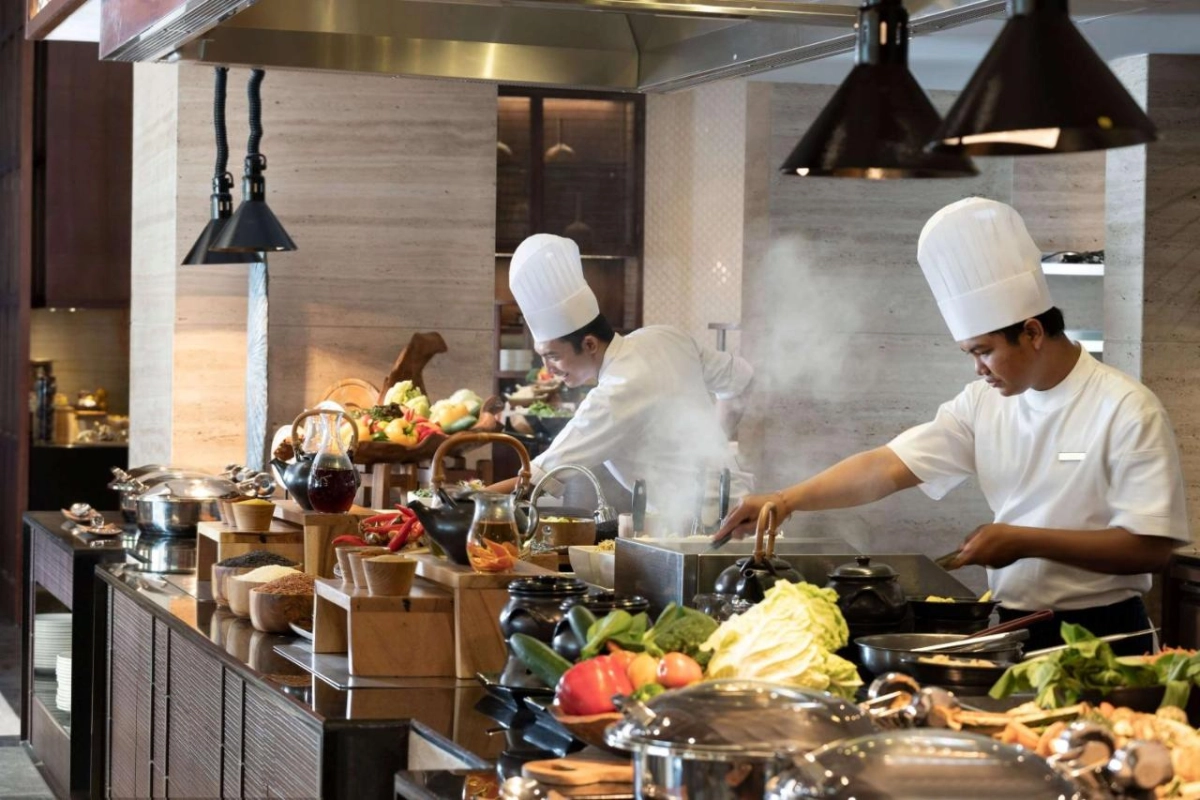 The shimmering resort pool, open from 8am to 9pm, invites refreshing swims amid tropical splendor, while direct access to the white-sand beach beckons for leisurely strolls or water pursuits. Jiwa Wellness offers indulgent massage treatments and beauty therapies for a fee, fostering renewal, and complimentary classes in local cooking, dancing, and Indonesian language immerse visitors in Bali's cultural warmth. Guided bicycle tours, yoga lessons, and water sports like snorkeling are available at an extra cost, with the fitness centre supporting active days. Dining delights span Suku Restaurant's outdoor buffet and à la carte breakfasts, RIN's innovative Japanese cuisine, and Eight Degrees South's beachfront Mediterranean and seafood specialties. East Bar and Azure Bar serve light refreshments and artisanal cocktails, rounding out evenings with seaside charm.