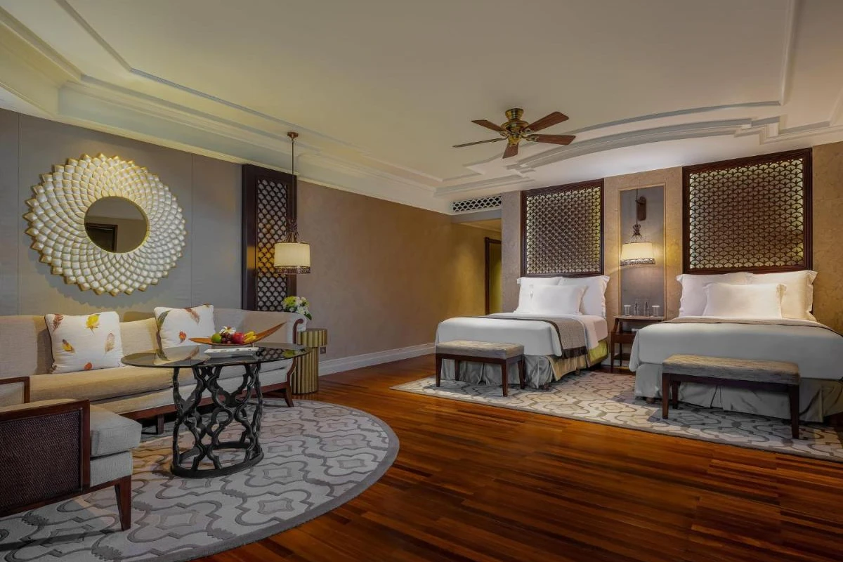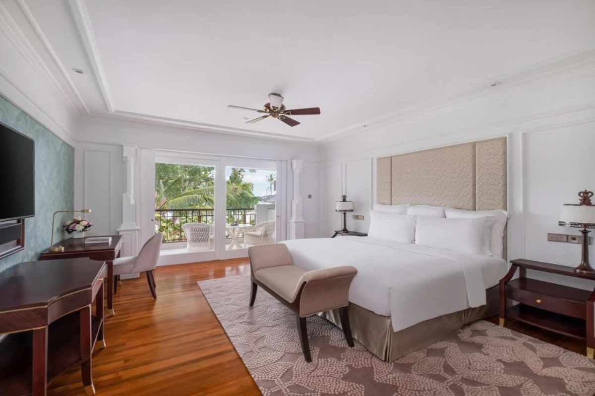 Each room at InterContinental Bali Resort unfolds with serene elegance, featuring private terraces overlooking gardens or the ocean, flat-screen TVs with satellite channels, safes, and tea/coffee facilities. En-suite bathrooms provide bathtubs and premium amenities, creating restful spaces that harmonize modern comforts with Bali's gentle coastal essence.
