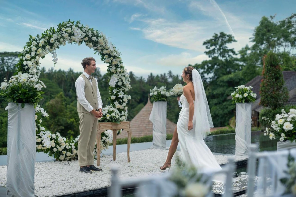 A 15-minute drive from Ubud Market, Ubud Palace, and Ubud Monkey Forest, with a complimentary shuttle to central Ubud, Jannata Resort and Spa rests 1.5 hours from Ngurah Rai International Airport, where the lower-level perch fosters intimate elopements or vow renewals amid Bali's natural embrace.
