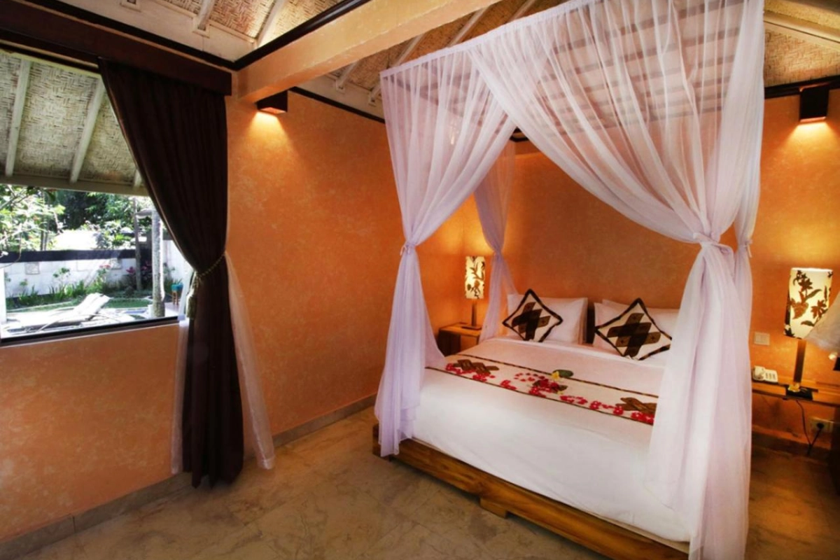 Each villa, adorned with traditional Balinese décor that honors the natural surroundings, offers generous space with sweeping views of the lush jungle. Equipped with a television and DVD player, the villas create a cozy ambiance, while select accommodations feature private plunge pools nestled against verdant backdrops, perfect for quiet moments of reflection.