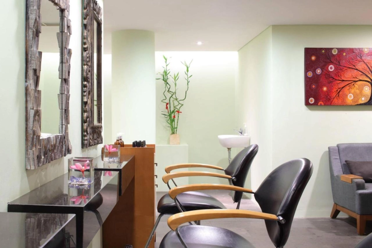 Bamboo Chic Restaurant presents a vibrant array of Pan-Asian cuisine infused with Balinese flavours, served in a dynamic three-story dining complex. Latitude 8, the lobby lounge, offers curated cocktails and light tapas with lagoon views, while WaLa tempts with handcrafted gelato and Illy coffee. Smoqee Sky Bar crafts artisanal cocktails against a backdrop of ocean sunsets and live music. The Serenity spa pampers with signature treatments in three dedicated rooms, and a state-of-the-art fitness centre and yoga studio foster wellness. Guests can explore through curated cultural tours or relax by the lagoon pool or nearby Jimbaran Beach, with the Le Méridien Hub providing a creative space for connection amid contemporary art.